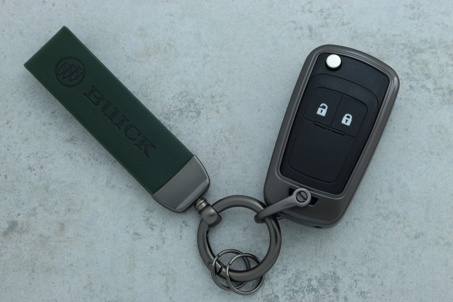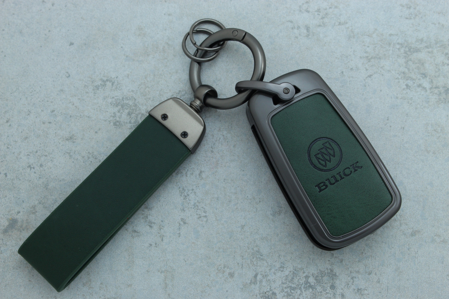Чохол для автоключа Buick (Excelle) 3 кнопки графітовий метал + зелена шкіра — стильне поєднання міцності та елегантності, яке забезпечує надійний захист ключа від пошкоджень, подряпин і зносу.