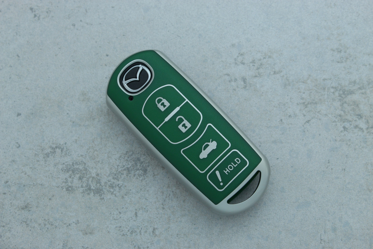 Чохол для автоключа Mazda Smart CX-3/CX3, CX-5/CX5, CX7, CX-8, CX-9 4 кнопки матовий зелений поліуретановий — яскравий і функціональний аксесуар, що надійно оберігає ключ від подряпин, потертостей і щоденних пошкоджень.