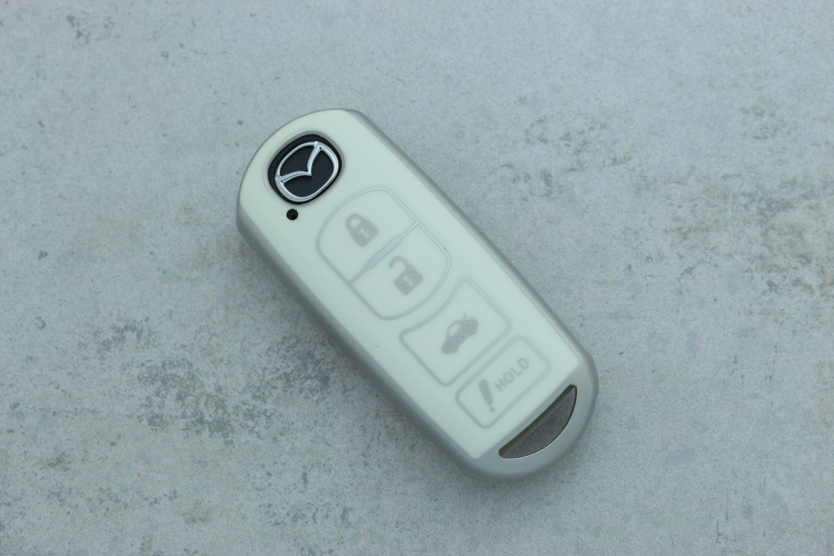 Чохол для автоключа Mazda Smart CX-3/CX3, CX-5/CX5, CX-7, CX-9, CX-8 4 кнопки матовий білий поліуретановий — універсальний аксесуар, що поєднує надійний захист і сучасний дизайн. Він ефективно оберігає ключ від подряпин, пилу та щоденного зносу.