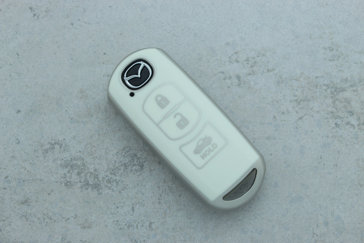 Чохол для автоключа Mazda Smart CX4/CX5 3 кнопки матовий білий поліуретановий — сучасний захисний аксесуар, що поєднує естетику та практичність, забезпечуючи ключу надійний захист від подряпин, пилу та зносу.