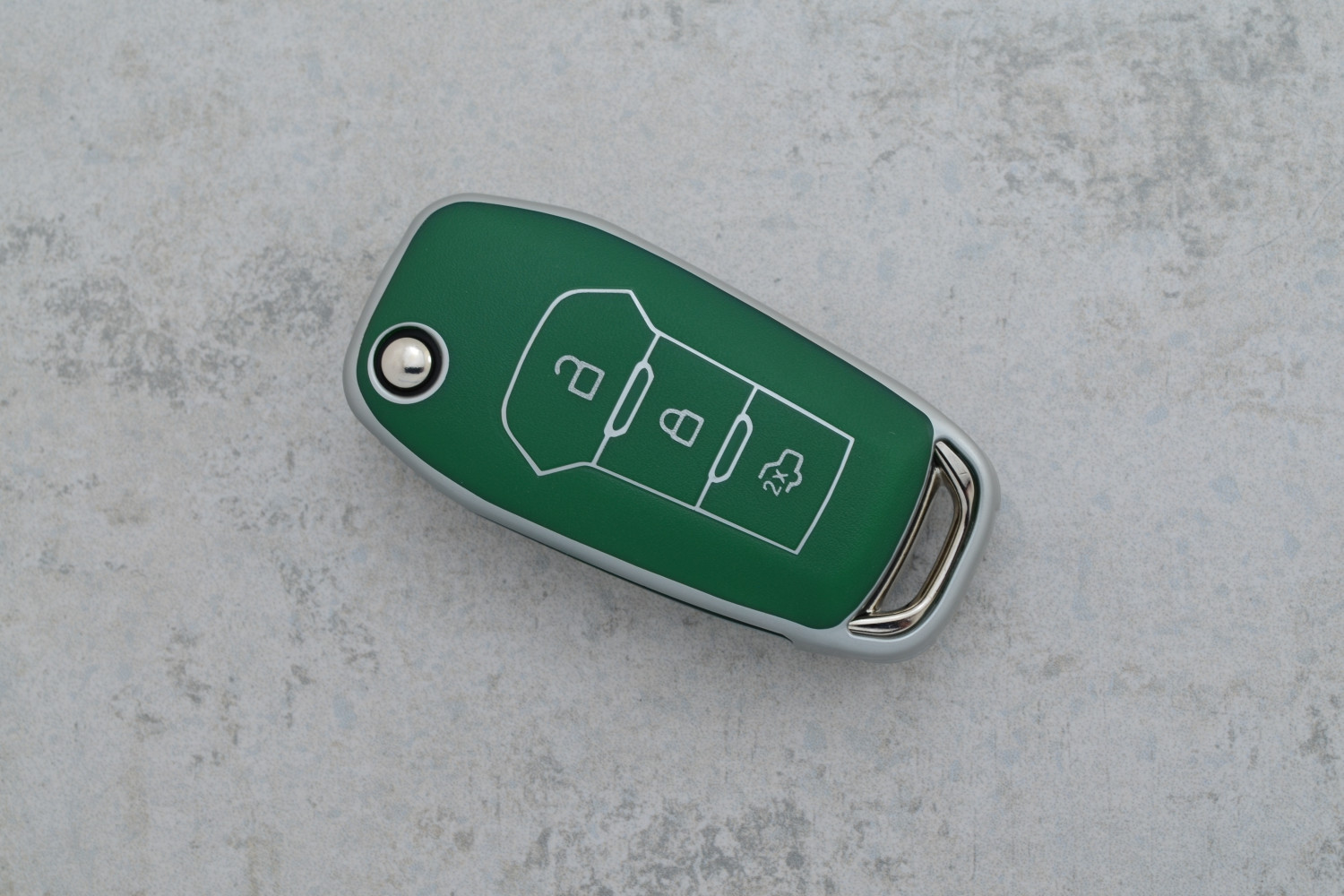 Чохол для автоключа Ford (Mondeo, Focus, Fiesta) 3 кнопки — матовий зелений поліуретан, практичний і стильний аксесуар, що захищає ключ від подряпин, ударів і щоденного зношування.