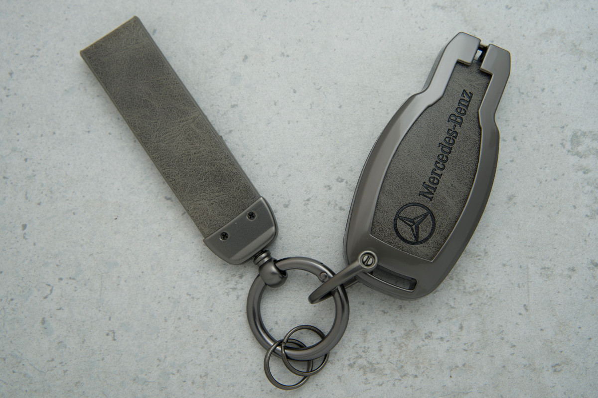 Чохол для ключа Mercedes універсальний — елегантне поєднання сірого металу та якісної екошкіри, створене для надійного захисту ключа та збереження його бездоганного вигляду. Такий аксесуар стане практичним доповненням для власників автомобілів Mercedes, поєднуючи довговічність, комфорт і стиль.
