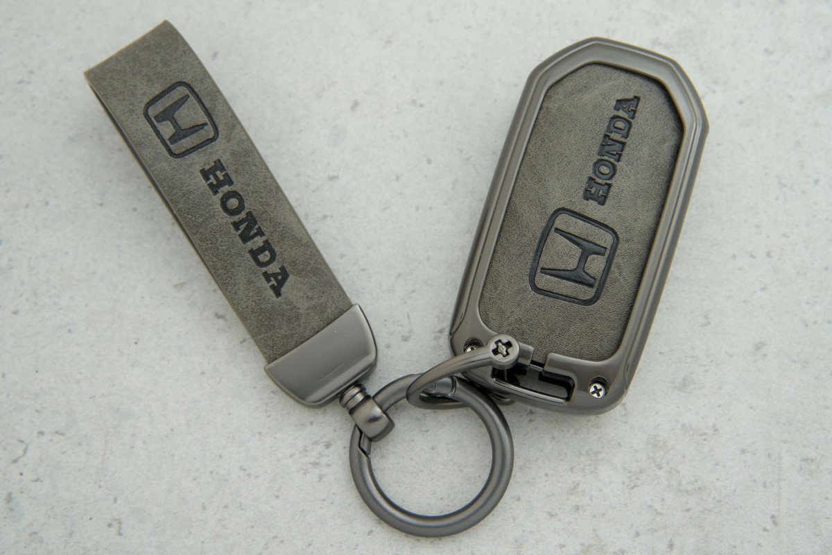 Чохол для автоключа Honda Accord LX/LXS/Sport 2013–2018 — сіра шкіра з графітовим металевим елементом — стильний та надійний аксесуар, що захищає ключ від подряпин, потертостей та щоденних ушкоджень.