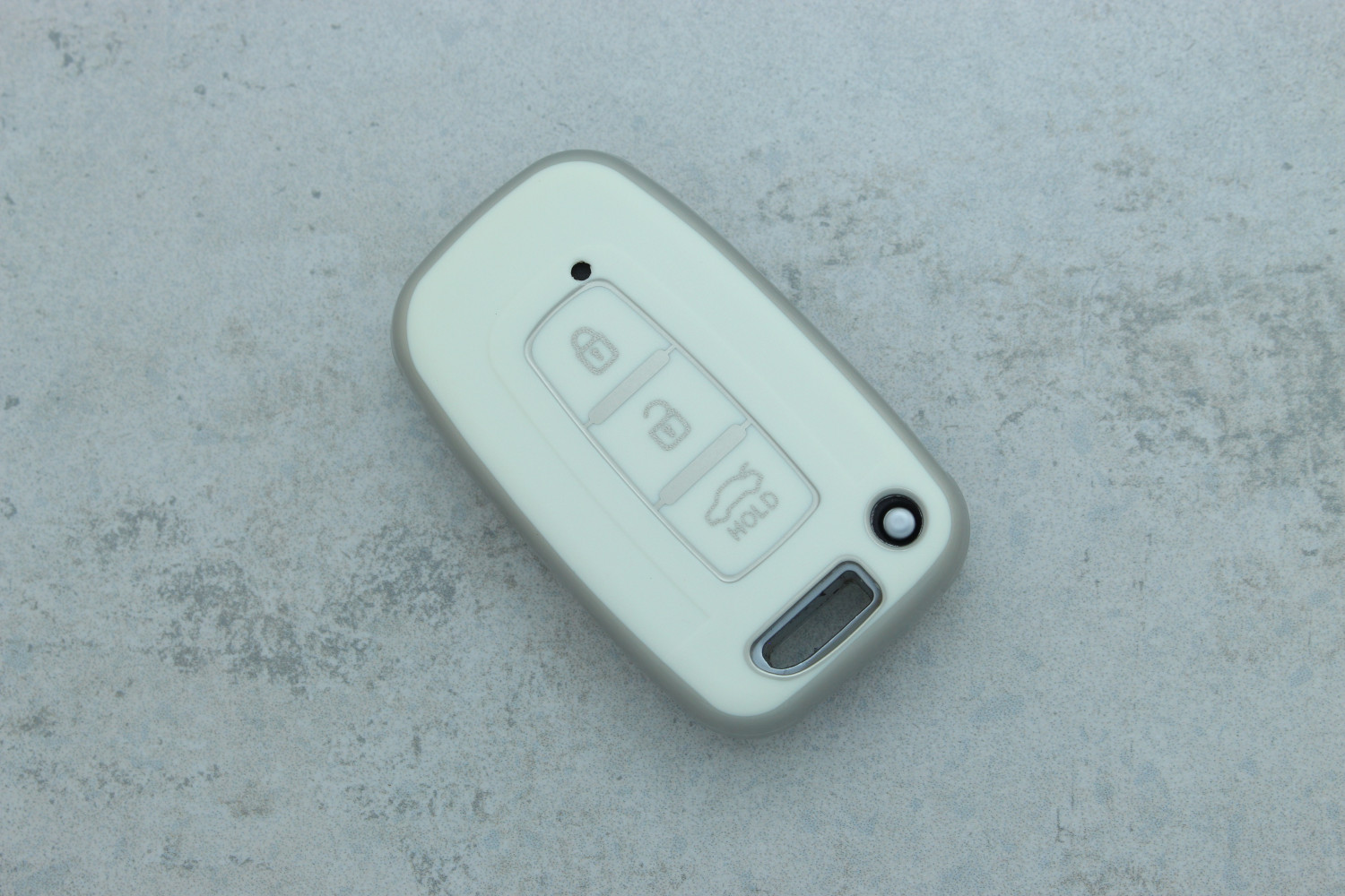 Чохол для автоключа Hyundai Solaris/Sonata 3 кнопки матовий білий — стильний і практичний аксесуар, який надійно захищає ключ від подряпин, потертостей і щоденних пошкоджень, зберігаючи його акуратний вигляд.