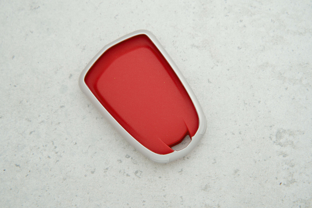 Чохол для автоключа Cadillac Smart 5 кнопок червоний поліуретановий — стильний та практичний аксесуар, що надійно захищає ключ від подряпин, потертостей і щоденних пошкоджень, зберігаючи його яскравий та доглянутий вигляд.