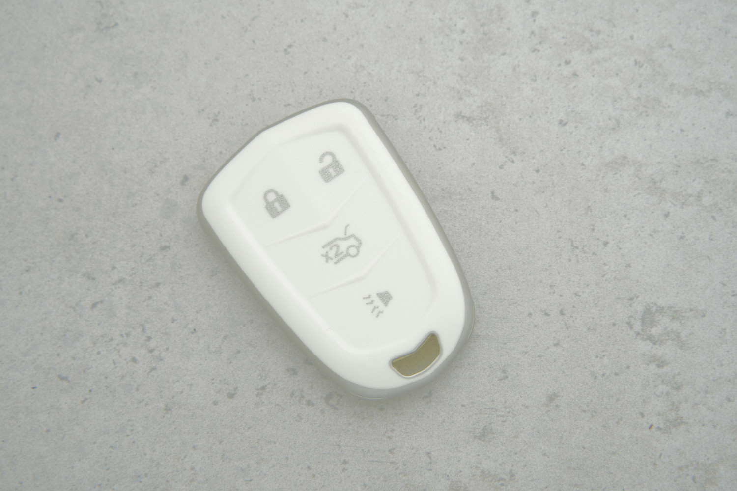 Чохол для автоключа Cadillac Smart 4 кнопки білий поліуретановий — стильний та практичний аксесуар, що надійно захищає ключ від подряпин, потертостей і щоденних пошкоджень, зберігаючи його акуратний вигляд.