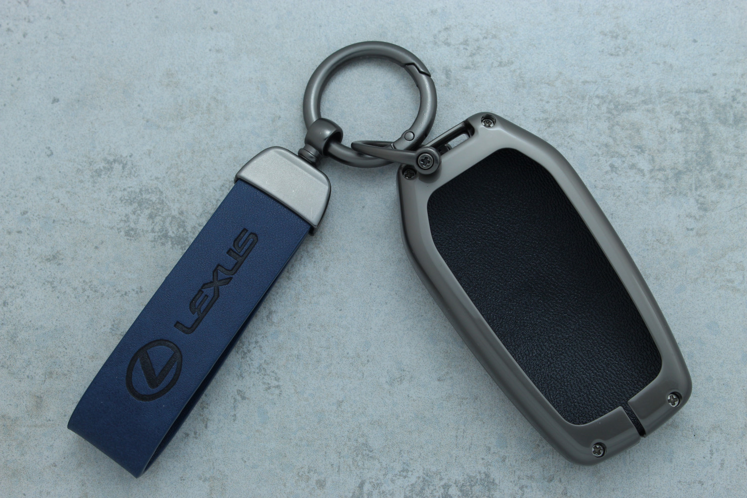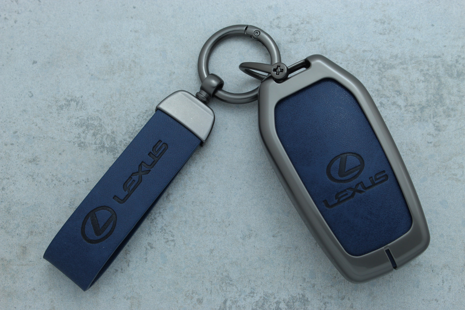 Чохол для автоключа Lexus Smart — синя шкіра з сірими металевими вставками, надійний і стильний аксесуар, що захищає ключ від подряпин, ударів та щоденних пошкоджень.