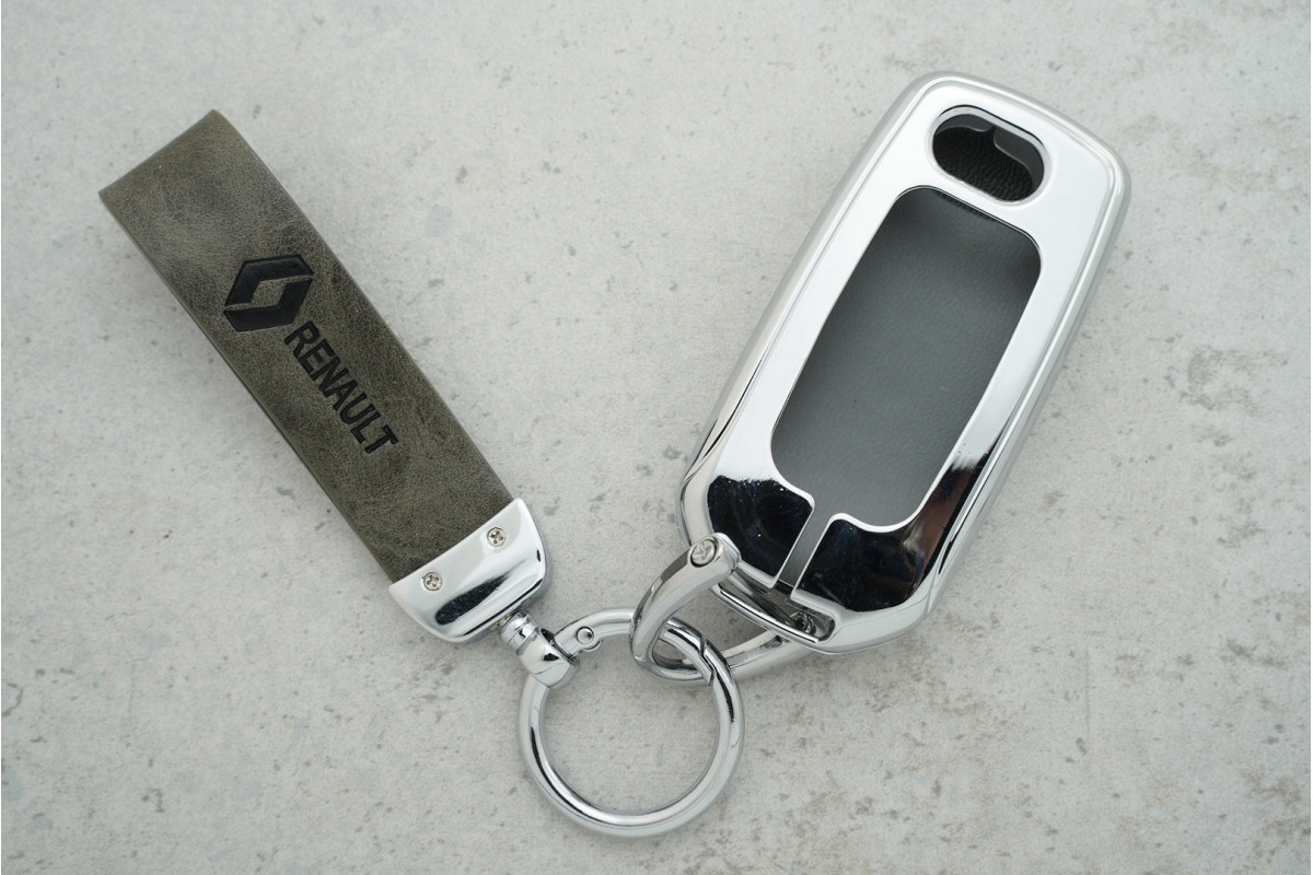 Чохол для ключа Renault (Symbol, Twingo, Duster, Sandero) із сірої шкіри та металевих вставок — практичний і стильний аксесуар, який забезпечує надійний захист ключа та додає преміального вигляду.
