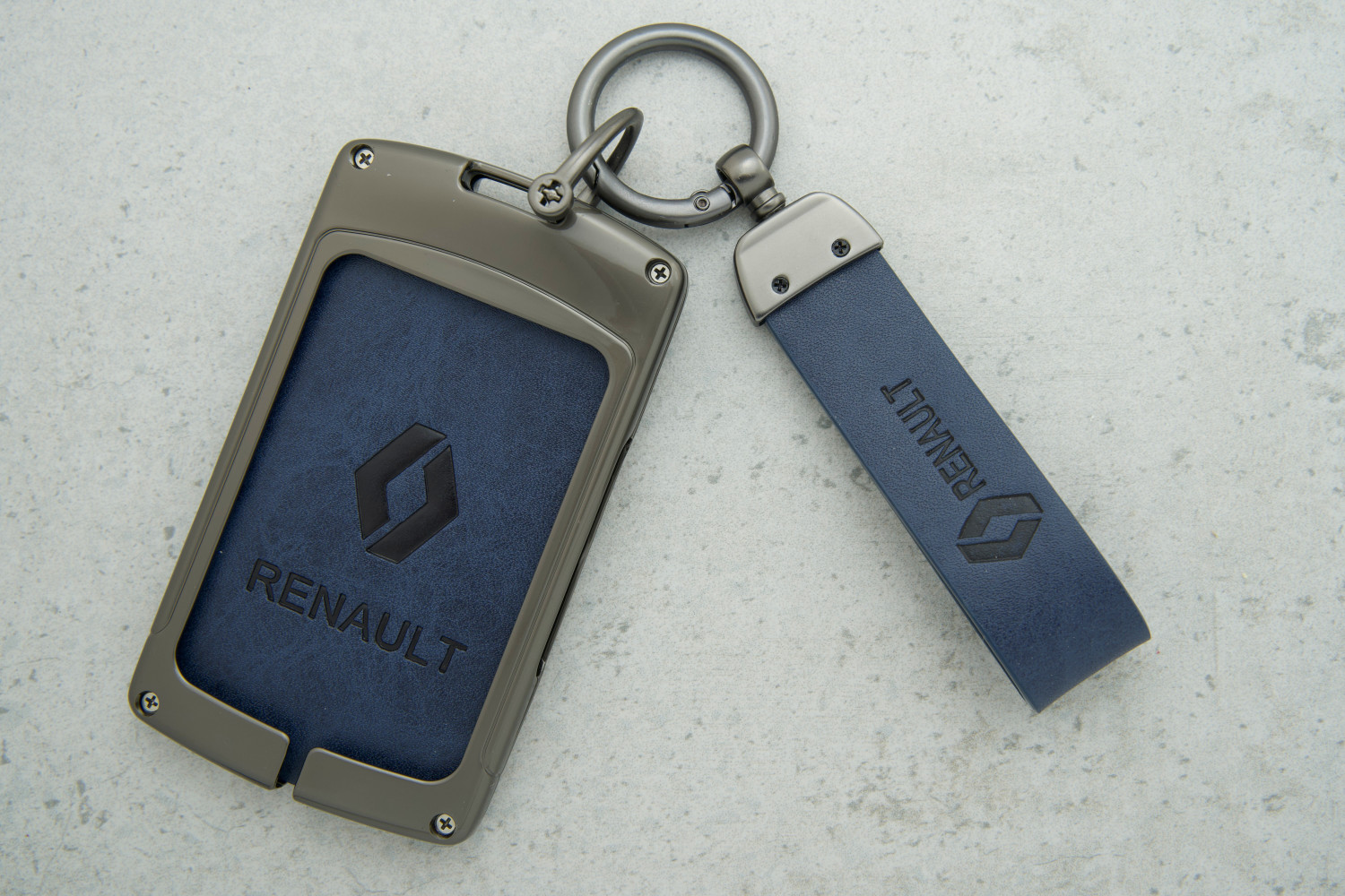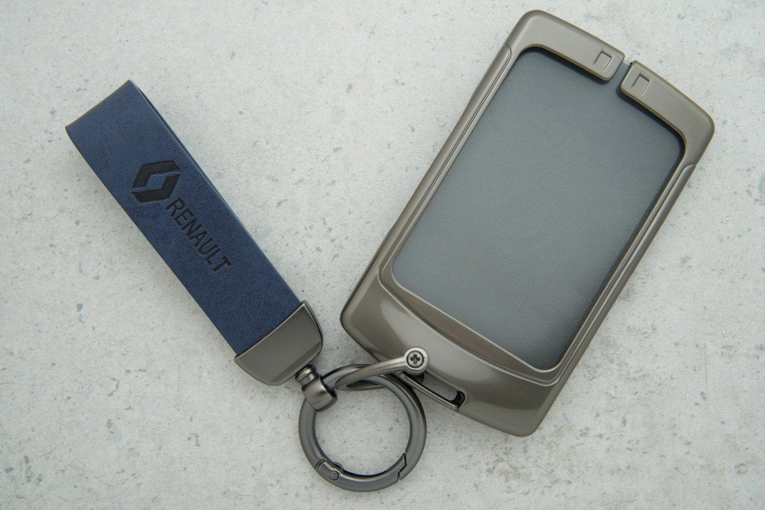Чохол для ключа Renault 4KH Смарт карта (Koleos, Clio, Megane, Scenic) із синьою шкірою та сірим металевим корпусом — універсальний аксесуар, що забезпечує надійний захист ключа та стильний сучасний вигляд.