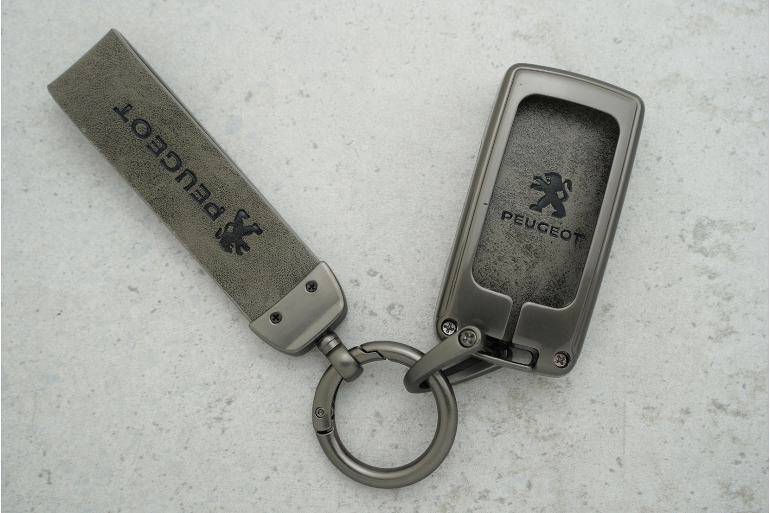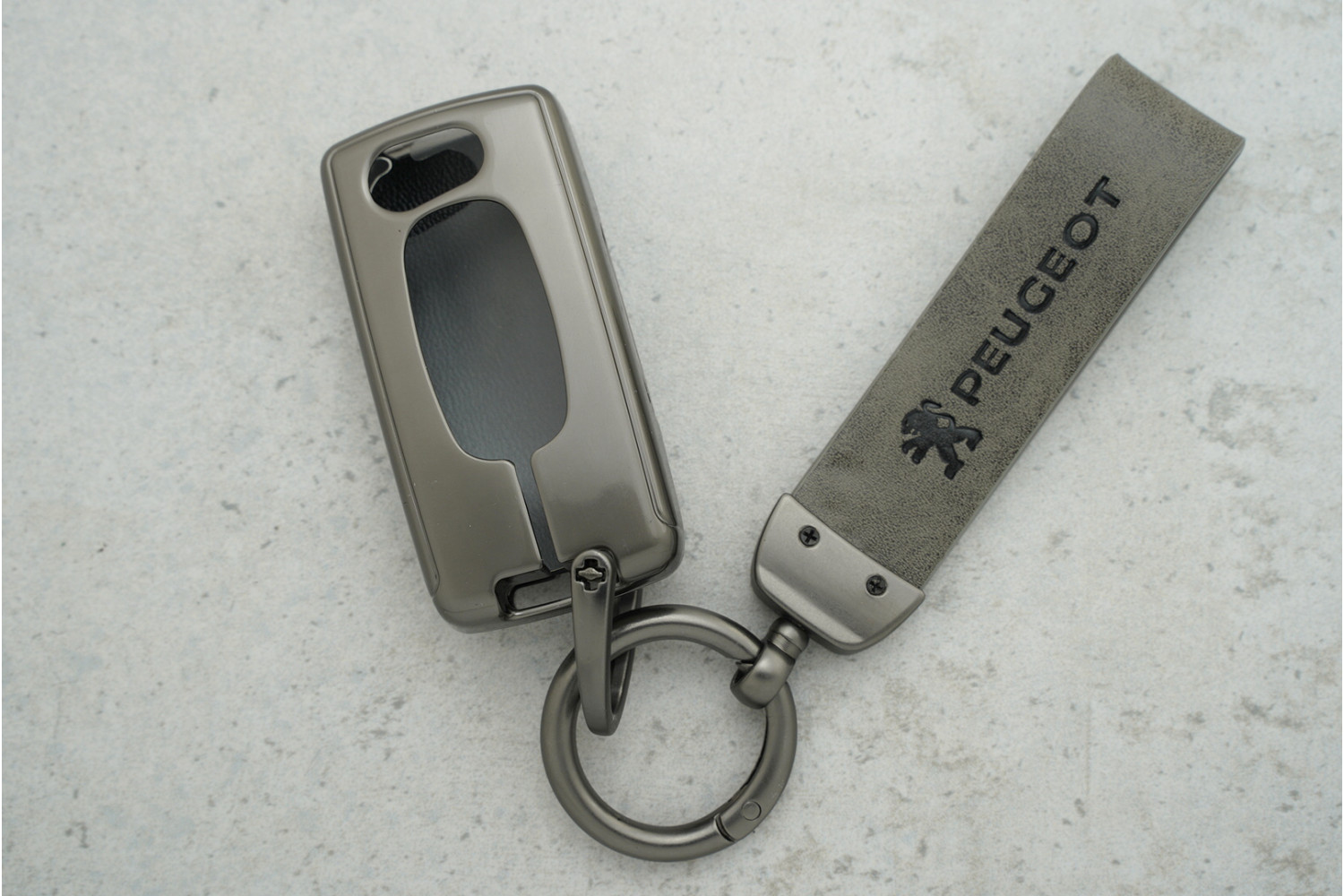 Чохол Peugeot 2/3KH 407 3008 5008 сірий метал + шкіра ефективно захищає ключ, підкреслює його стиль і додає зручності при щоденному використанні.