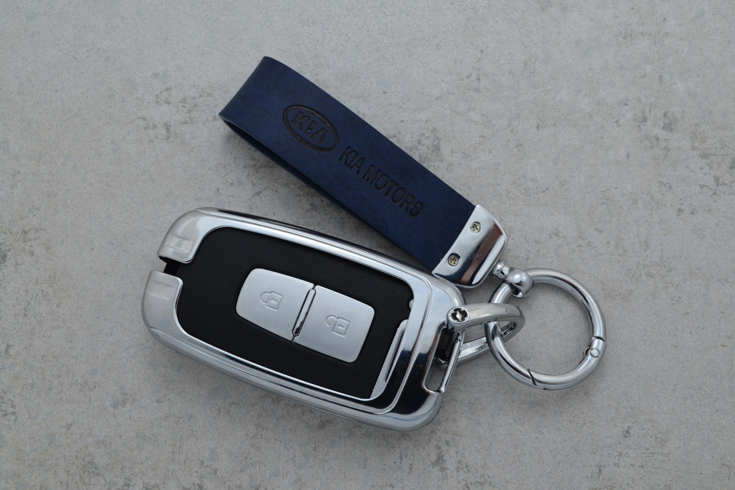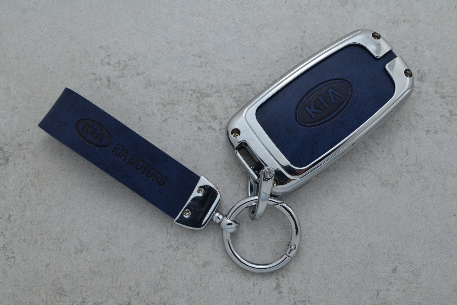 Чохол для автоключа KIA Smart (Optima, Rio, Sorento, Sportage) металевий із синьої шкіри — стильний та надійний аксесуар, що забезпечує ефективний захист ключа від подряпин, потертостей і щоденних пошкоджень.
