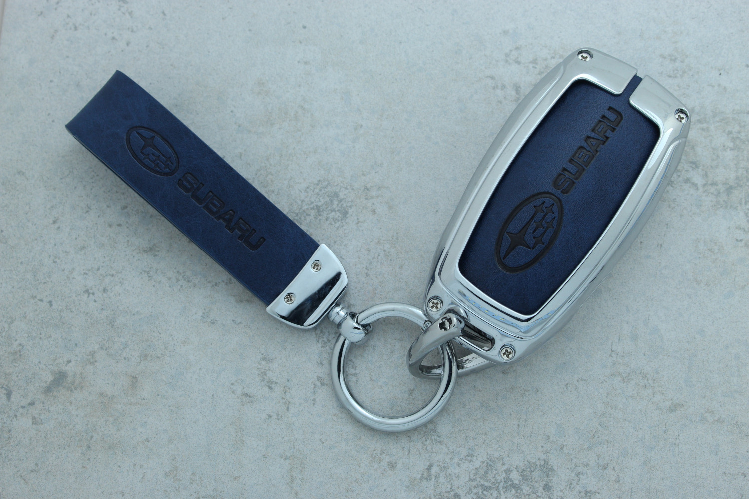 Чохол для автоключа Subaru Forester/XV/Outback металевий із синьої шкіри — надійний і стильний аксесуар, що захищає ключ від подряпин, зносу та щоденних пошкоджень.
