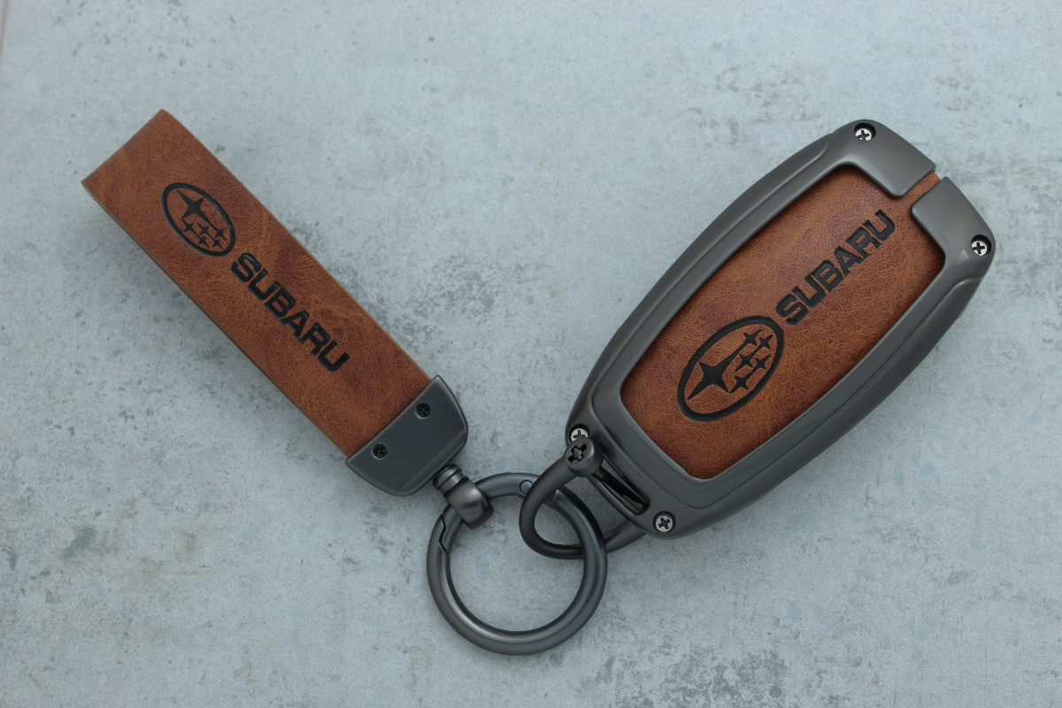 Чохол для автоключа Subaru Forester, XV та Outback коричневий з металевими елементами — надійний і стильний аксесуар, що захищає ключ від подряпин, ударів та щоденного зносу.