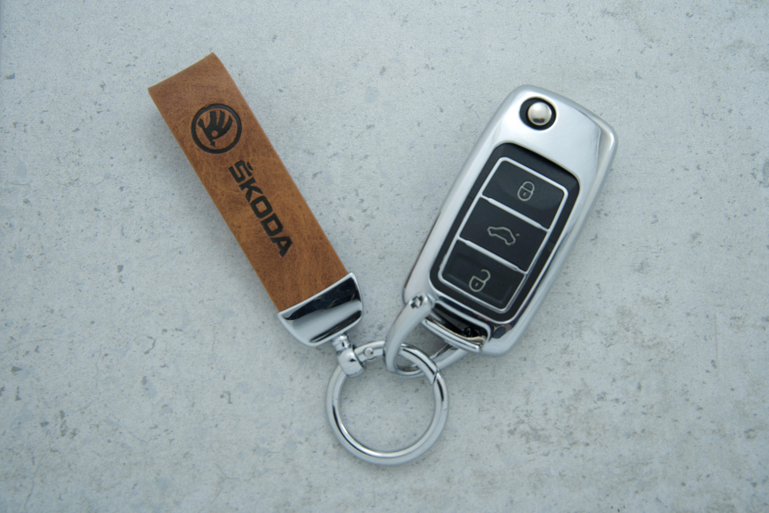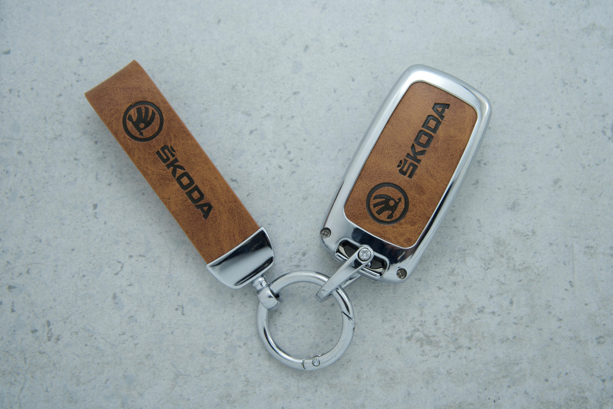 З цим шкіряно-металевим чохлом ключ Skoda Octavia A7 надійно захищений і виглядає стильно та презентабельно.