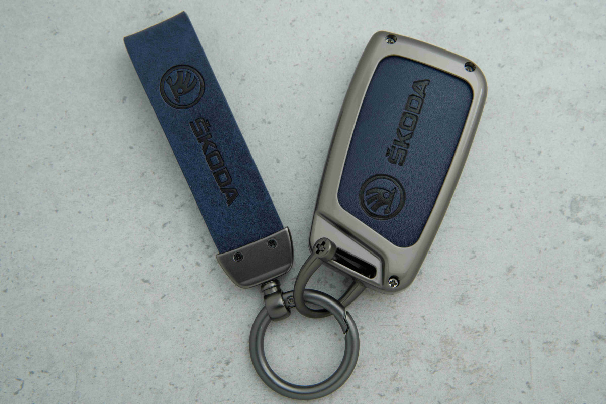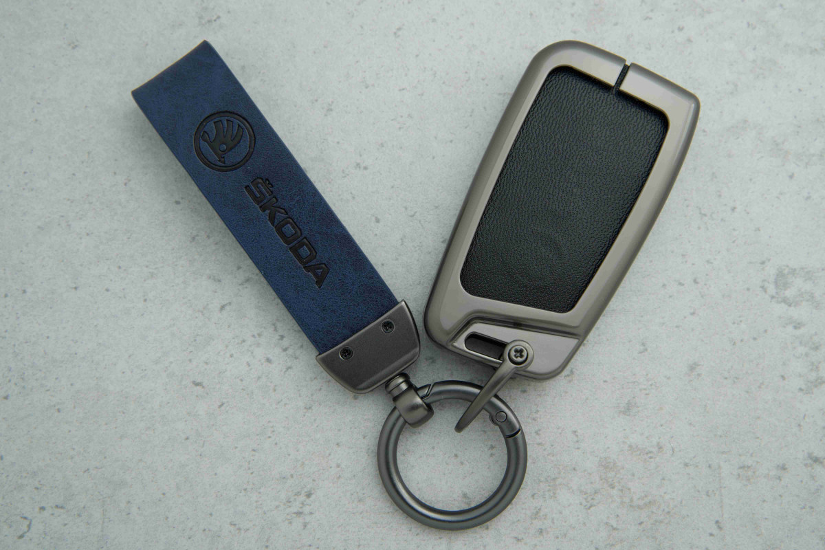 Стильний дизайн: синя шкіра та графітові металеві вставки надають ключу сучасного та елегантного вигляду.