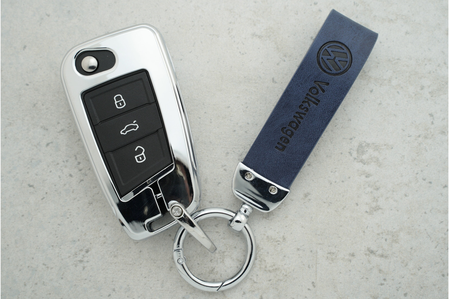 Універсальний чохол VW із синьої шкіри та металу забезпечує ключу надійний захист і робить його більш привабливим та зручним у щоденному користуванні.