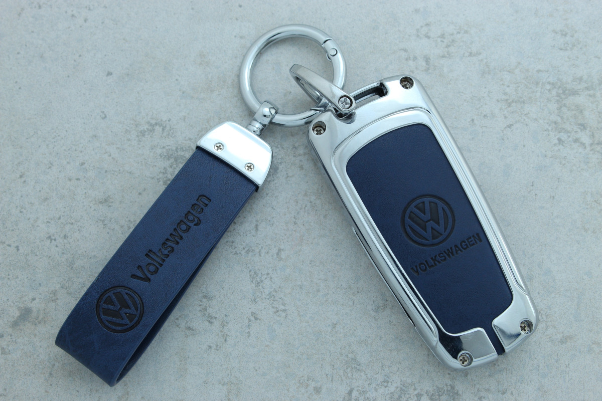 Чохол для автоключа Volkswagen 3 кнопки Smart Passat B6/B7/CC шкіряно-металевий синій — стильний і надійний аксесуар, що забезпечує захист ключа від подряпин, ударів та щоденного зношування.