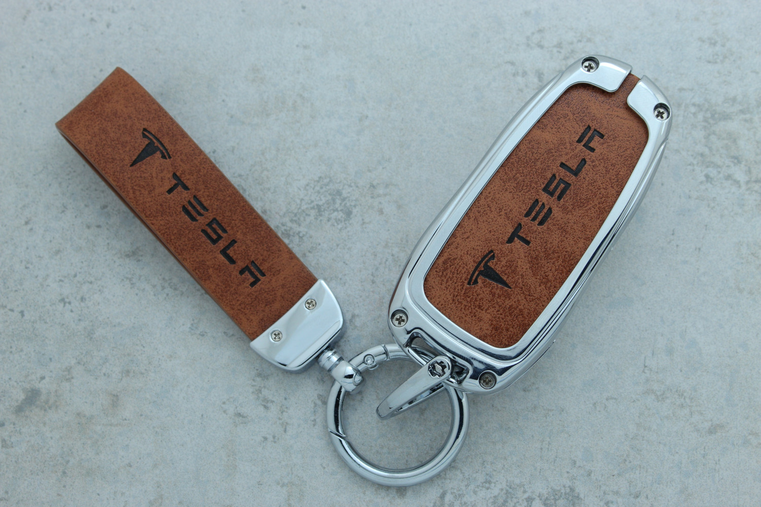 Чохол для ключа Tesla Model X коричневий метал + шкіра — надійний і стильний аксесуар, який захищає ключ від подряпин, ударів та щоденного зносу.