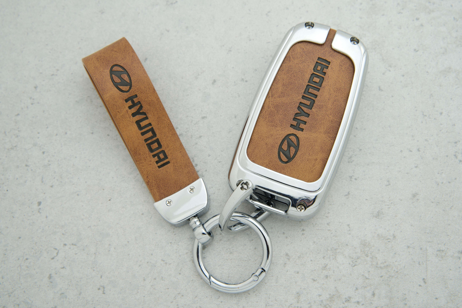 Чохол Hyundai (Solaris, Sonata) з коричневої шкіри та металу забезпечує надійний захист, комфорт і стильний зовнішній вигляд ключа щодня.