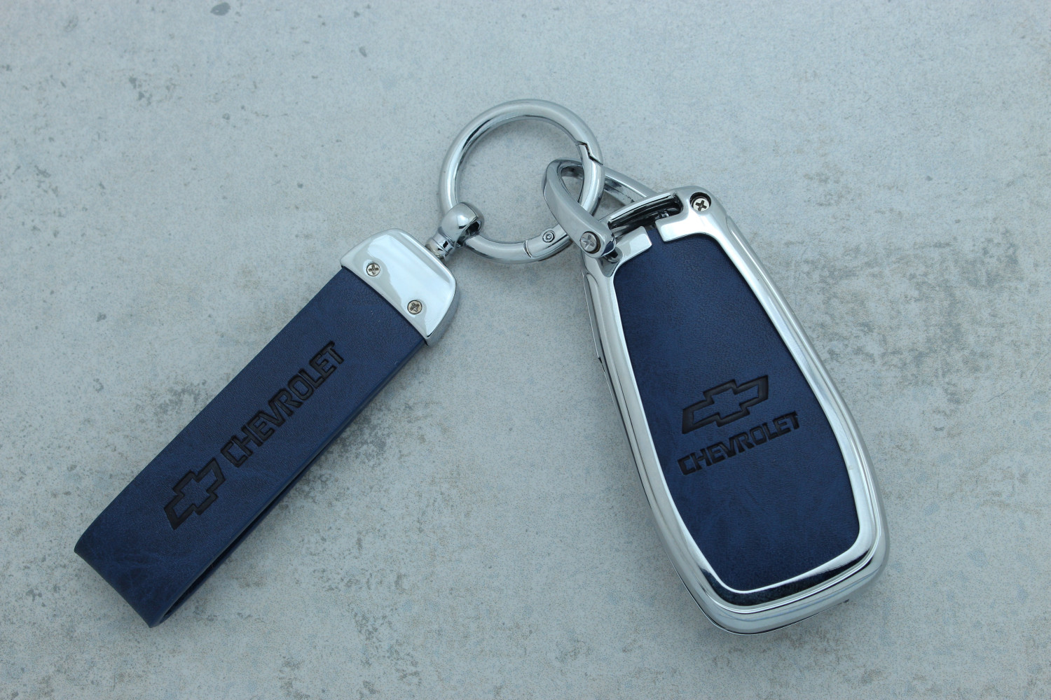 Чохол для автоключа Chevrolet Cover, метал + синя шкіра — практичний та стильний аксесуар, що надійно захищає ключ від подряпин, ударів і щоденного зносу.