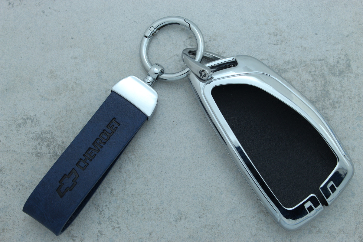 Чохол для автоключа Chevrolet Suburban / Tahoe (2021–2022) 4 кнопки, метал + синя шкіра — преміальний аксесуар, що поєднує надійність і стиль. Забезпечує ефективний захист ключа від подряпин, ударів та щоденного зношування, зберігаючи його бездоганний вигляд.