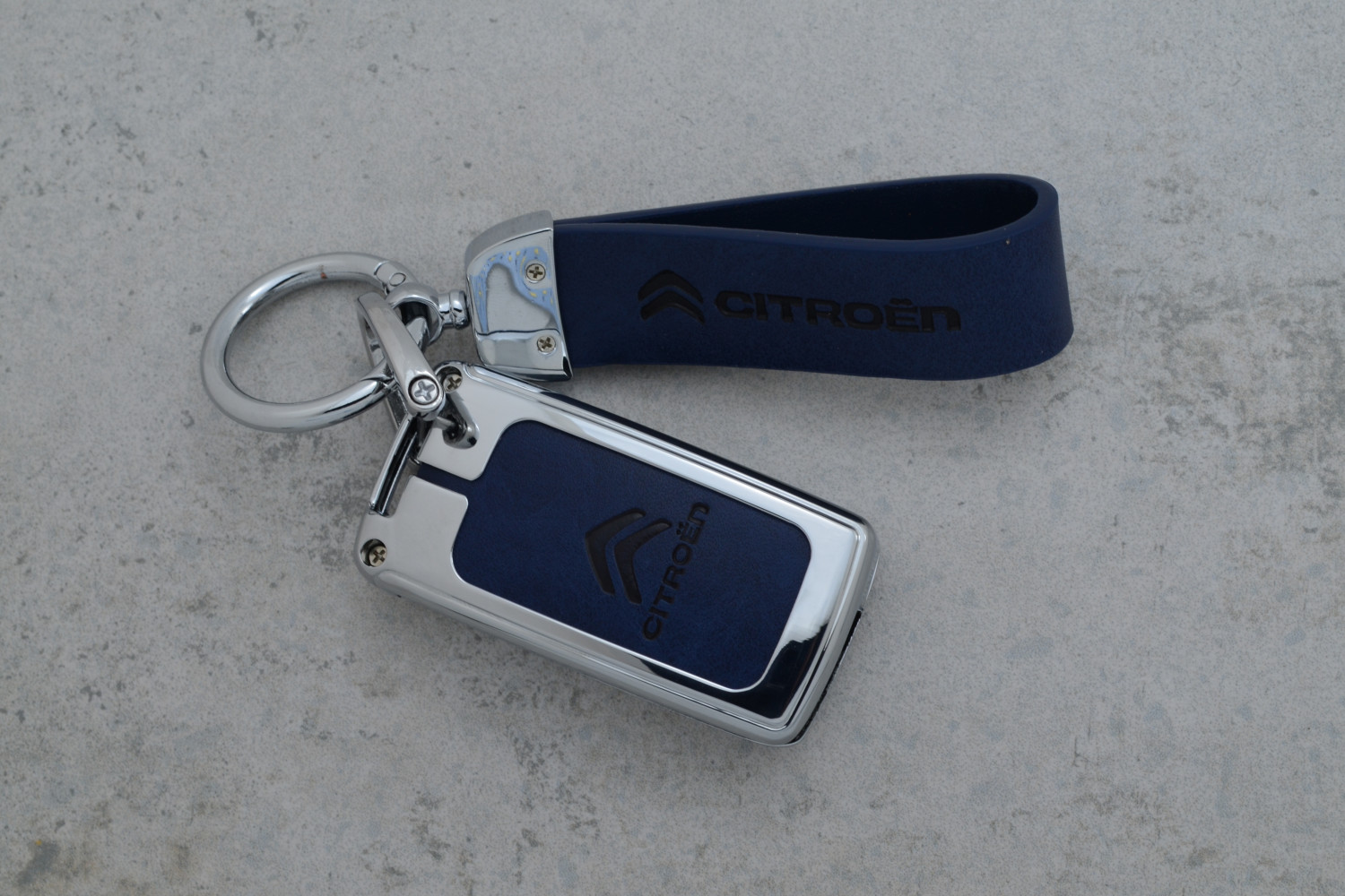 Чохол для автоключа Citroën (Berlingo, C4 Picasso, Jumpy, C4 Grand Picasso) метал + синя шкіра — елегантний і міцний аксесуар, що надійно захищає ключ від подряпин, потертостей і пошкоджень у щоденному користуванні.