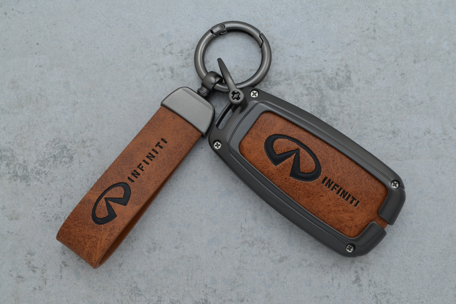 Чохол для автоключа Infiniti універсальний сірий метал із коричневої шкіри — елегантний та надійний аксесуар, який поєднує стиль і захист, зберігаючи ключ у бездоганному стані.