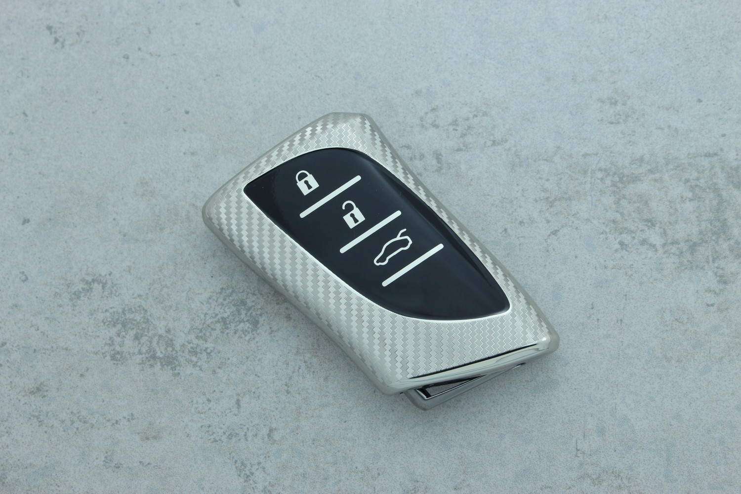 Чохол для автоключа Lexus 3 кнопки Smart NX/RX/LX/LC карбон сріблястий поліуретановий — міцний та стильний аксесуар, що захищає ключ від подряпин, ударів та щоденного зносу, надаючи йому сучасного та преміального вигляду.