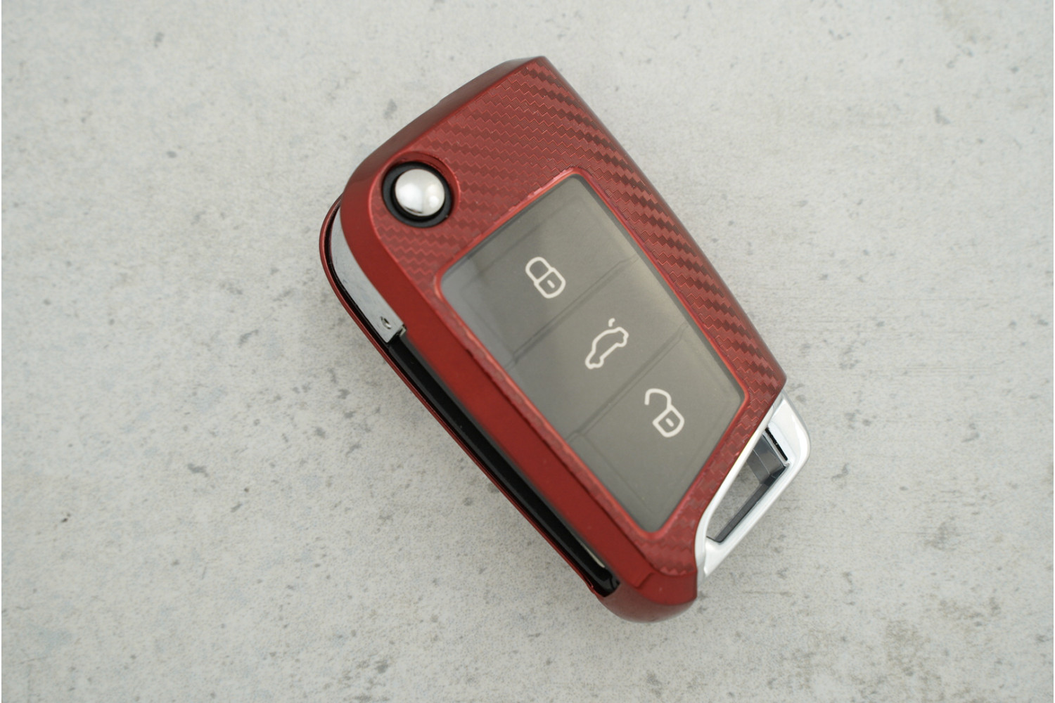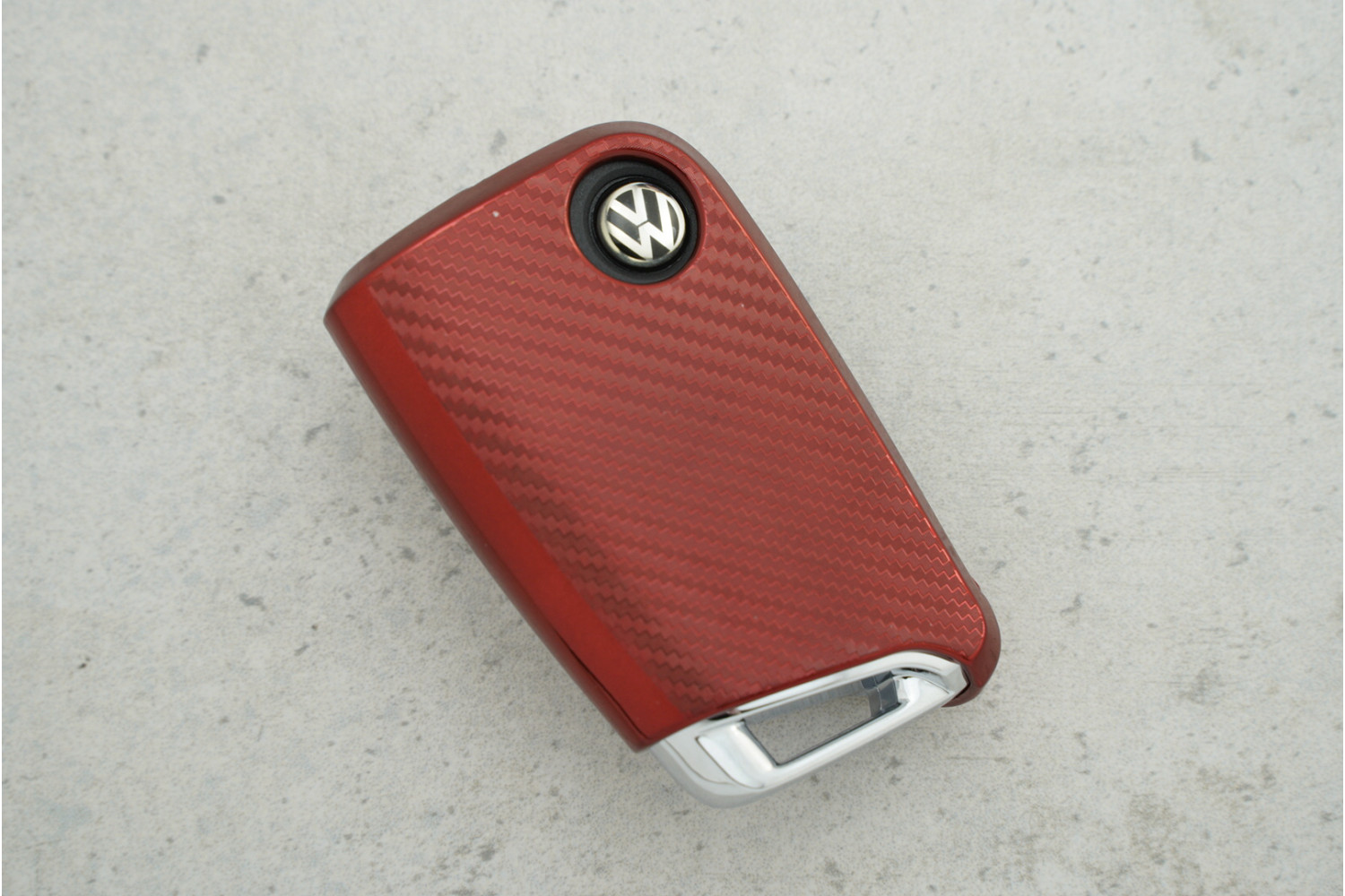 Чохол для автоключа Volkswagen 3KH (MK7 GTI, Golf 7, Golf R, Golf 7S) у червоному карбоновому виконанні з ТПУ — компактний та практичний аксесуар, що захищає ключ від подряпин, ударів і щоденного зносу.