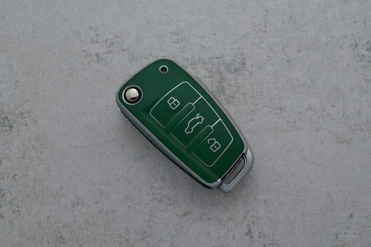 Чохол для автоключа Chery та Audi A4/A4L/A6/A6L/Q2L/Q3/Q5/Q7 3 кнопки матовий зелений поліуретановий — сучасний та функціональний аксесуар, який забезпечує надійний захист ключа від подряпин, ударів і щоденного зносу.