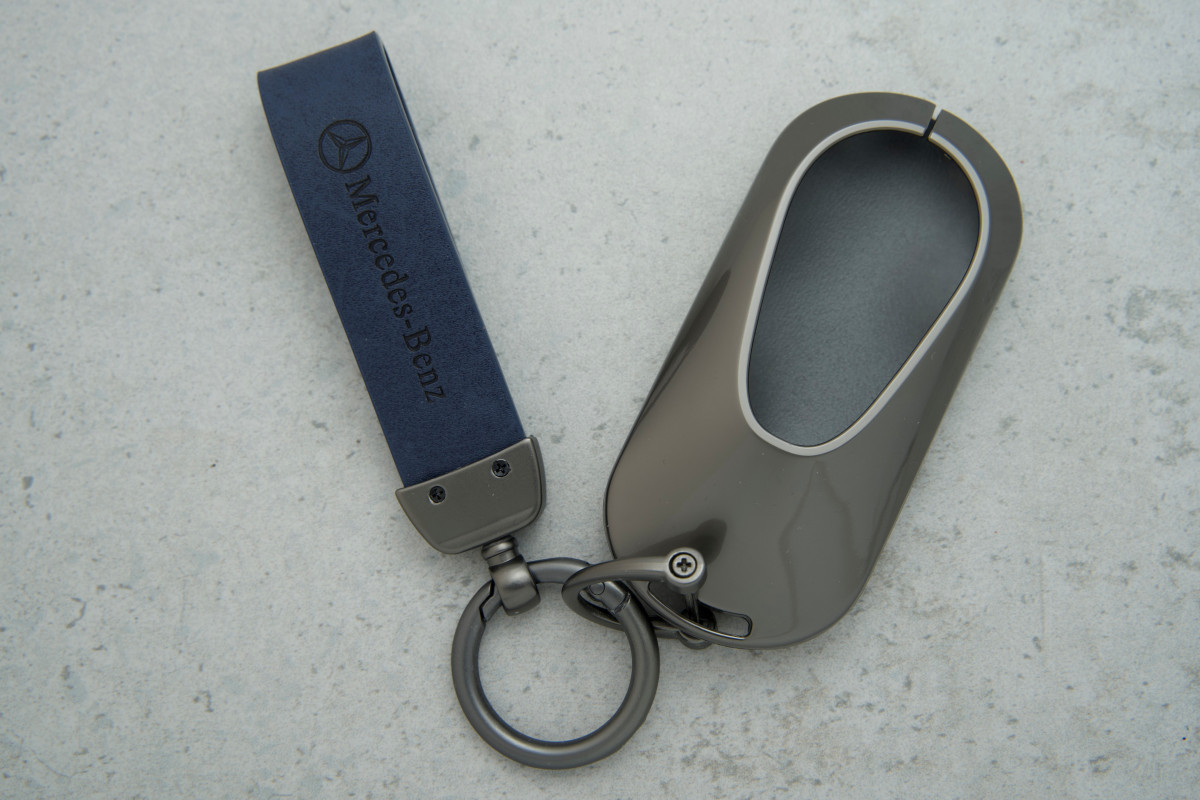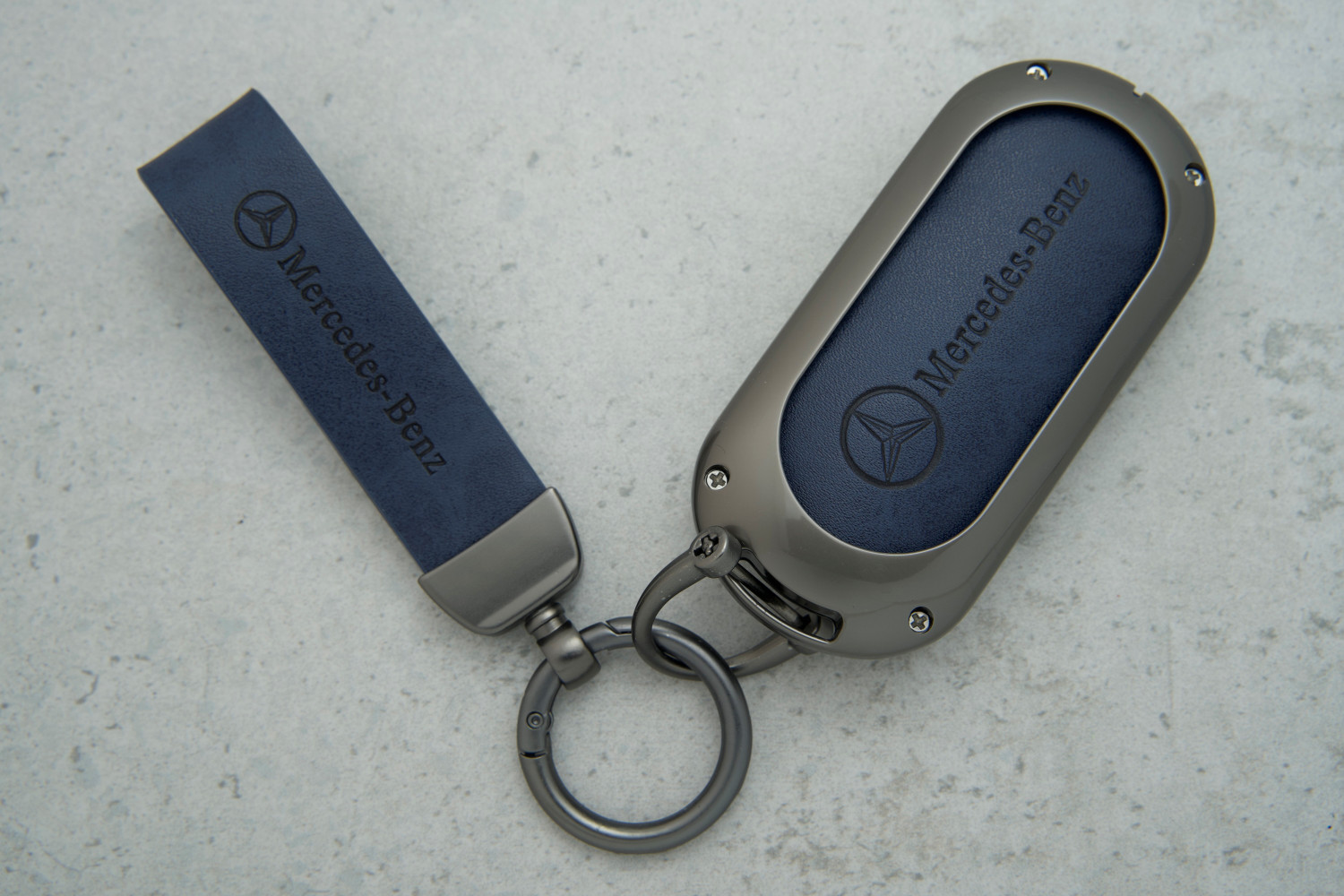 Чохол для ключа Mercedes — універсальний аксесуар, що поєднує стиль і надійний захист вашого ключа. Виконаний із синьої шкіри з елементами графітового металу, він надає ключу преміального вигляду та комфорт у щоденному користуванні.