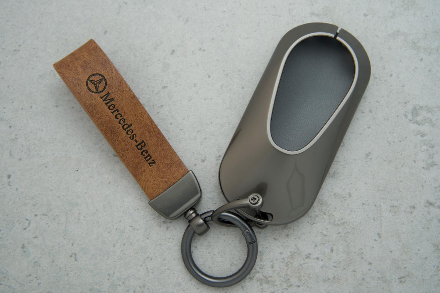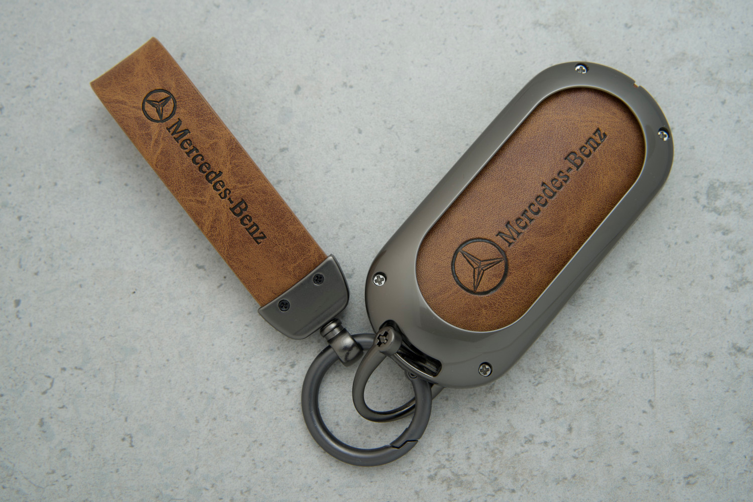 Чохол для ключа Mercedes універсальний — практичний та стильний аксесуар, створений для надійного захисту автомобільного ключа. Виготовлений із поєднання коричневої шкіри та металевих елементів, він вирізняється міцністю, елегантністю та зручністю у використанні.