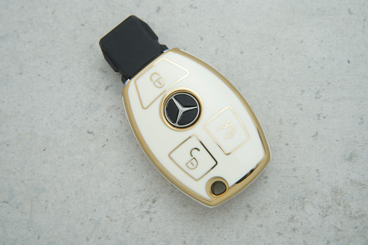 Чохол для ключа Mercedes з 3 кнопками — елегантний аксесуар, створений для надійного захисту ключа та надання йому стильного вигляду. Виготовлений із міцного білого поліуретану, він поєднує практичність, довговічність і приємну на дотик текстуру.