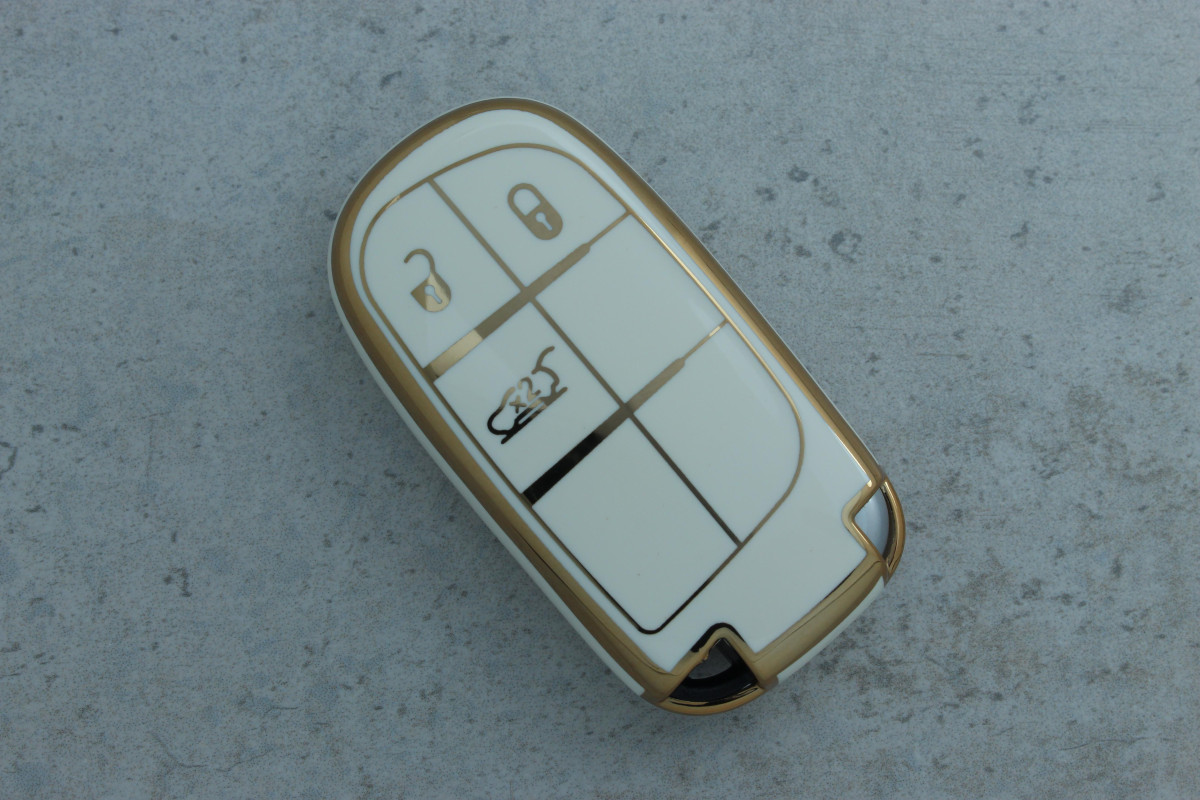 Чохол для автоключа Jeep/Cherokee/Dodge/Chrysler 3 кнопки з білого поліуретану — елегантний і функціональний аксесуар, що забезпечує надійний захист ключа від подряпин, потертостей і щоденного зносу.
