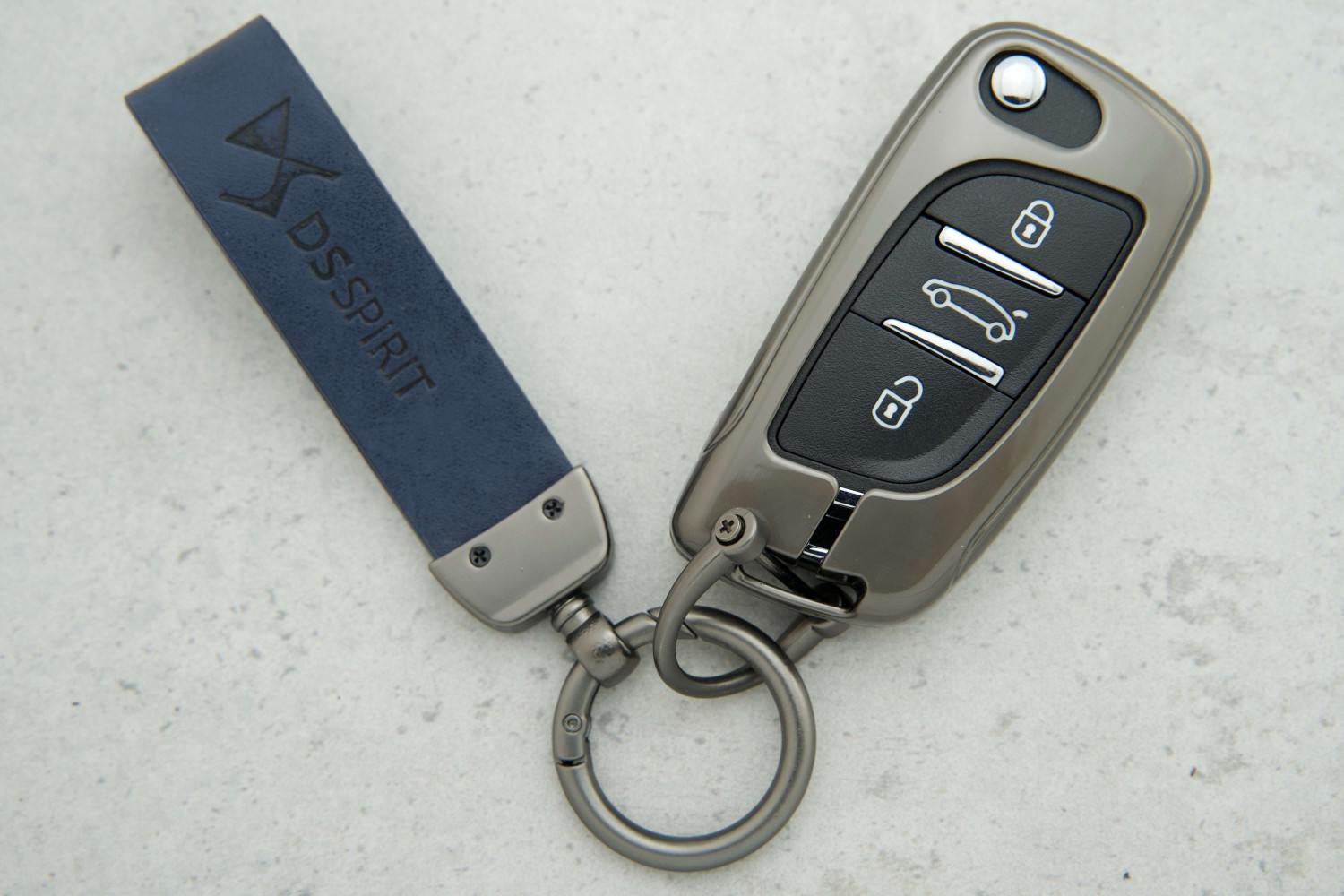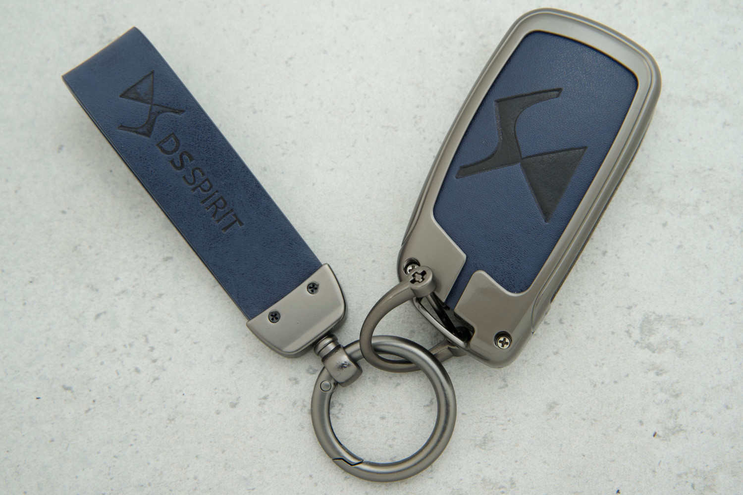 Стильний дизайн: контраст синьої шкіри та металу робить аксесуар привабливим, додаючи ключу преміального вигляду.