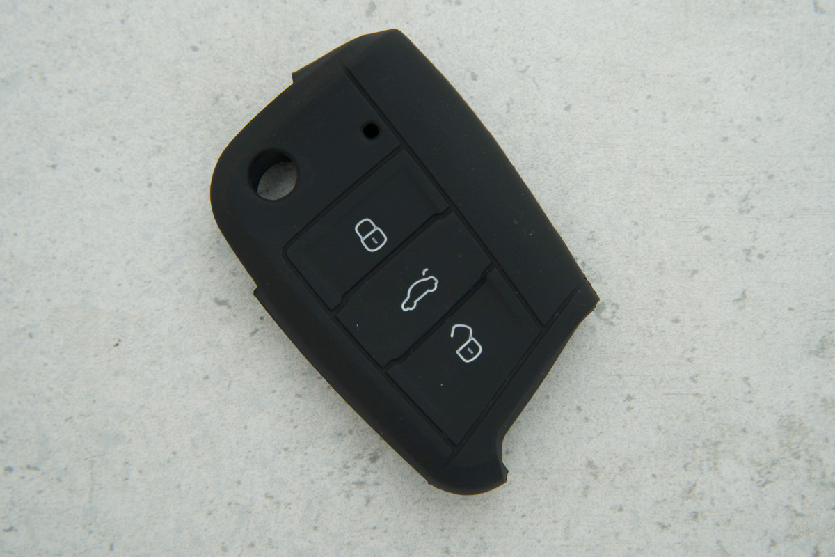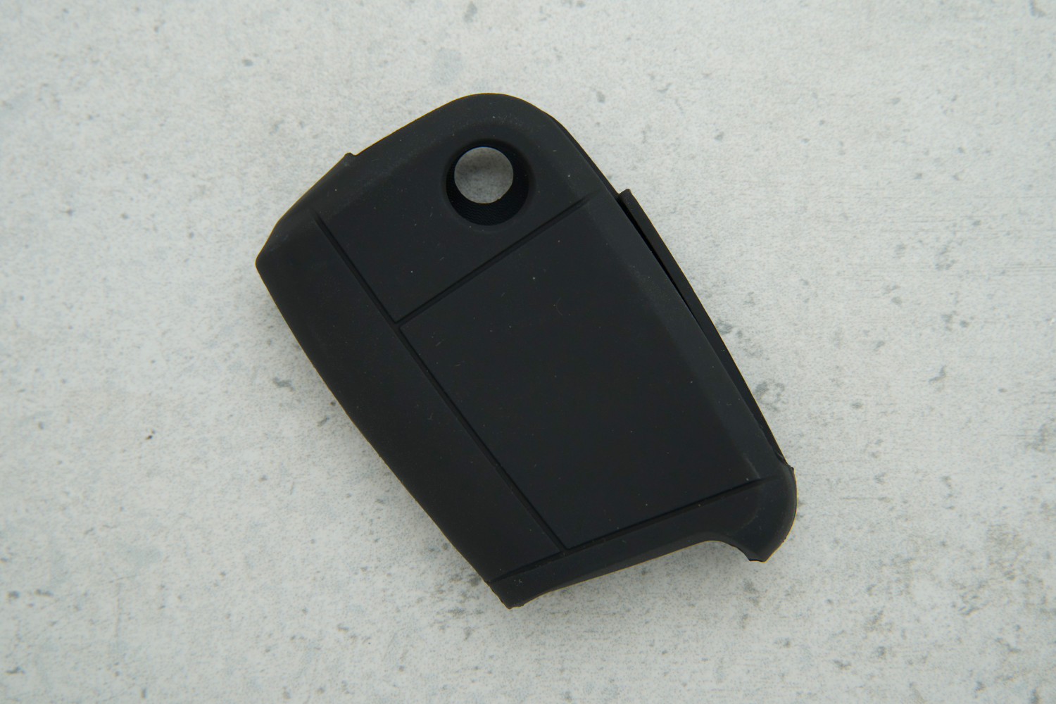 Чохол для ключа VW з 3 кнопками у чорному силіконі — компактний захисний аксесуар, створений для ключів Golf 7, Touran, Polo та Tiguan, що забезпечує приємний на дотик захист і оновлений вигляд.