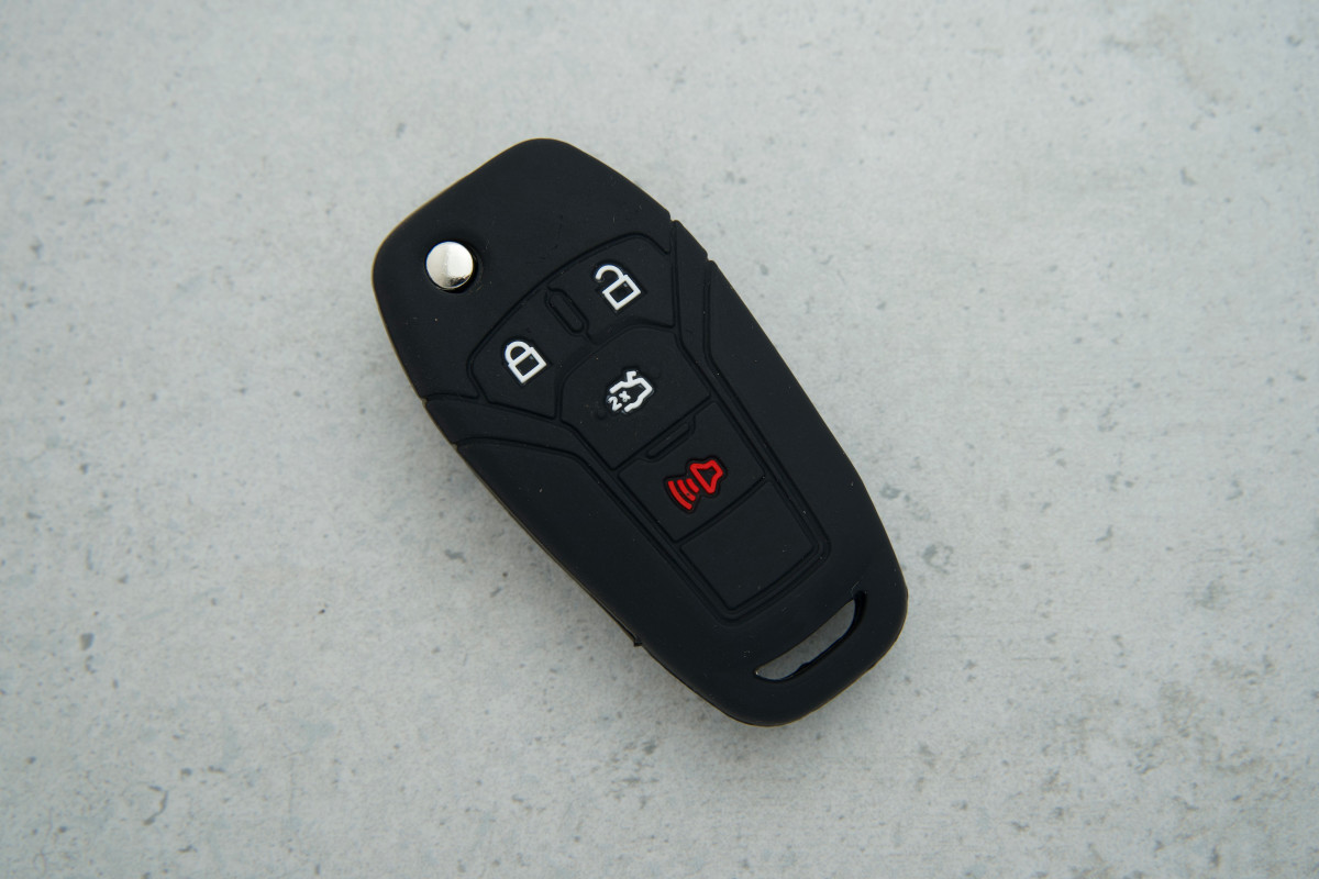 Чохол для ключа Ford (Mondeo, Focus, Fiesta) з 4 кнопками — практичний та стильний захист для вашого ключа, виготовлений із чорного силікону високої якості, що забезпечує довговічність та приємні тактильні відчуття.