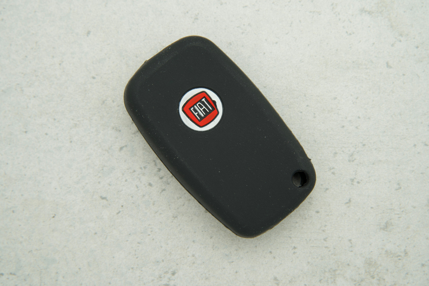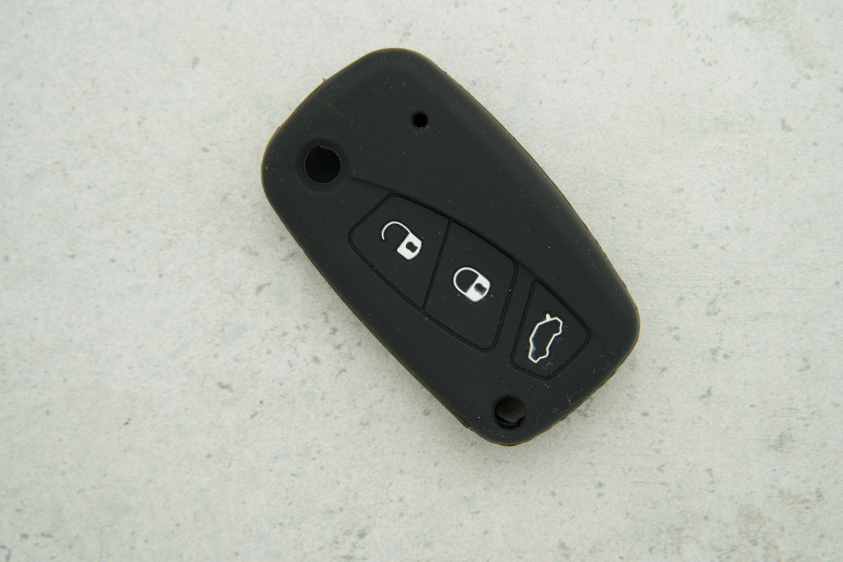Чохол для ключа Fiat чорного кольору з трьома кнопками, виготовлений із якісного силікону — надійний та практичний аксесуар для щоденного використання.