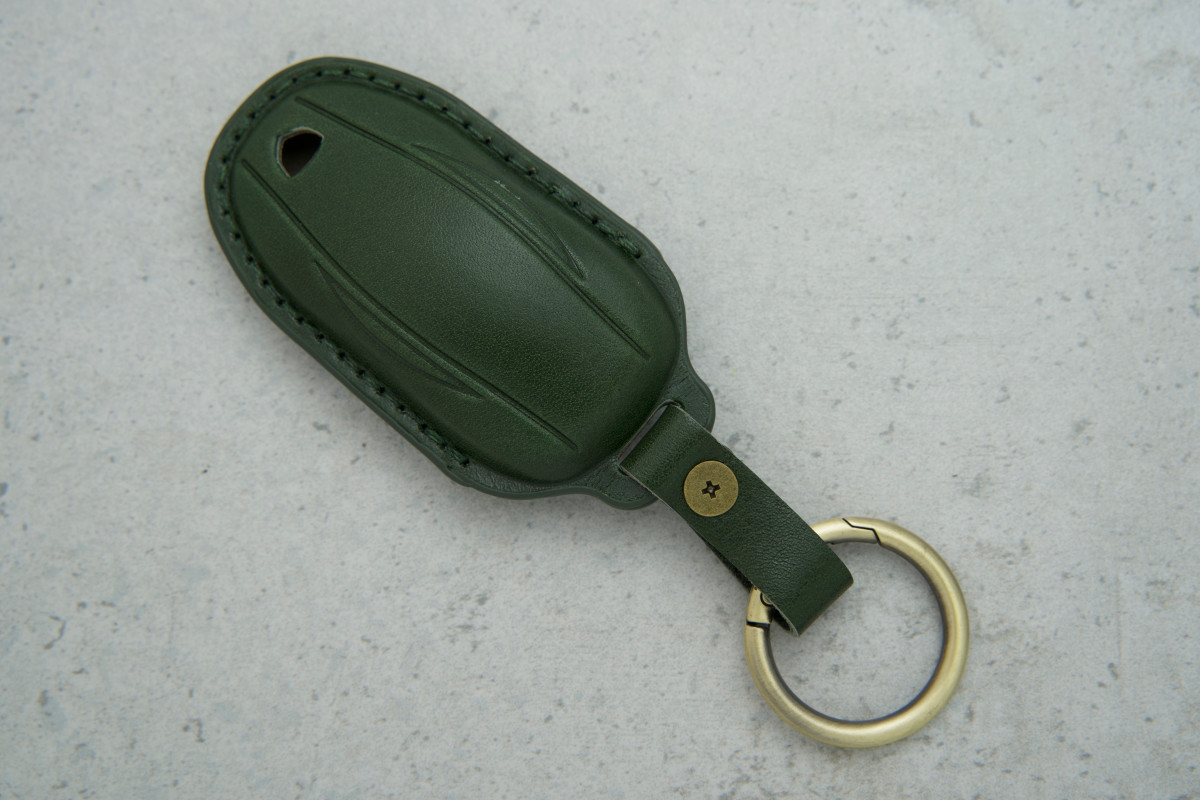 Чохол для ключа Tesla Model X — елегантний та практичний аксесуар для надійного захисту вашого ключа. Виконаний із зеленої натуральної шкіри, він поєднує стильний вигляд, приємну текстуру та довговічність.