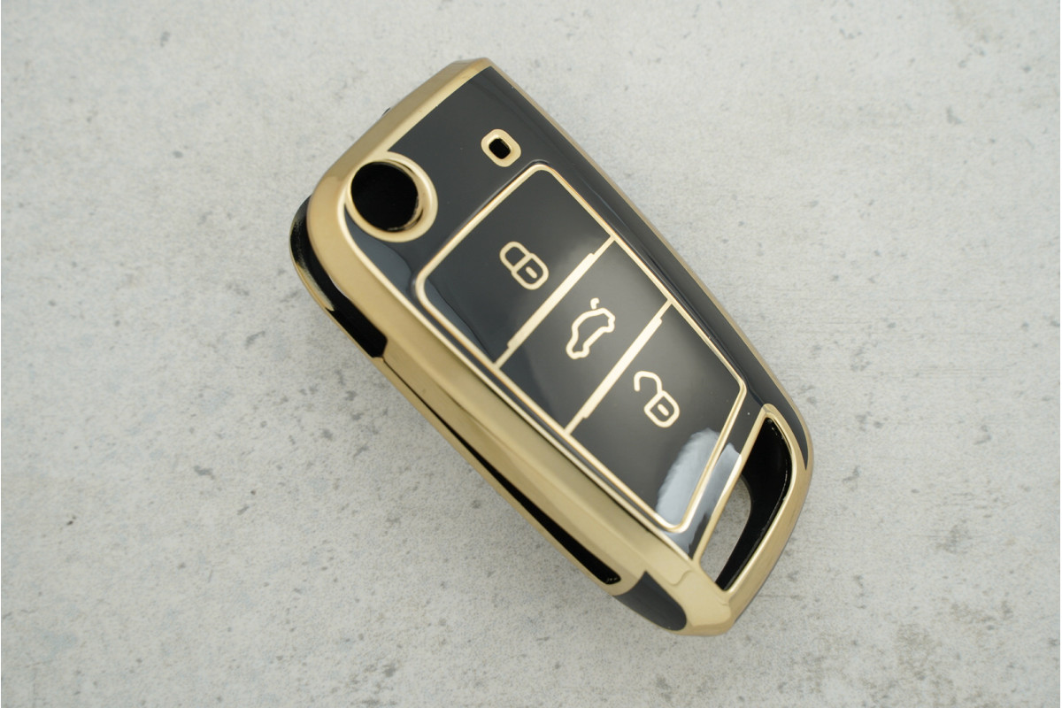 Чохол VW (Golf 7 / Tiguan / Passat B8) чорний поліуретан, 3 кнопки — практичний та надійний аксесуар для захисту автомобільного ключа, який допомагає зберегти його зовнішній вигляд і комфорт у щоденному користуванні.