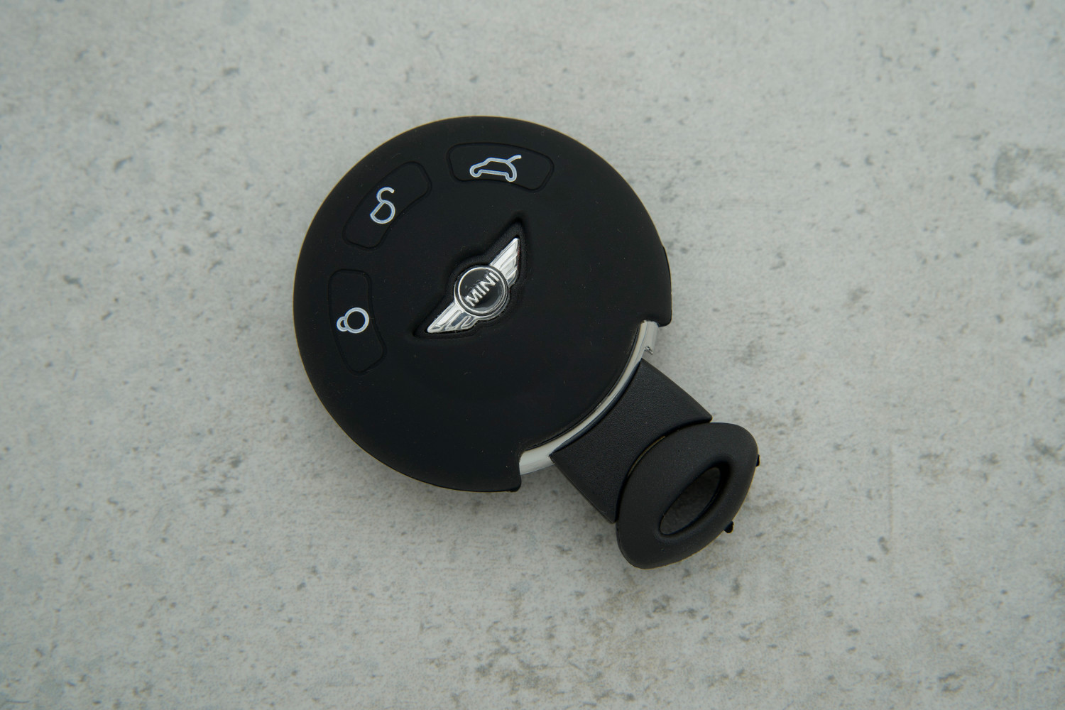 Чохол Mini Cooper 3 кнопки з силікону забезпечує довговічний захист і стильний вигляд автопульта у повсякденному користуванні.