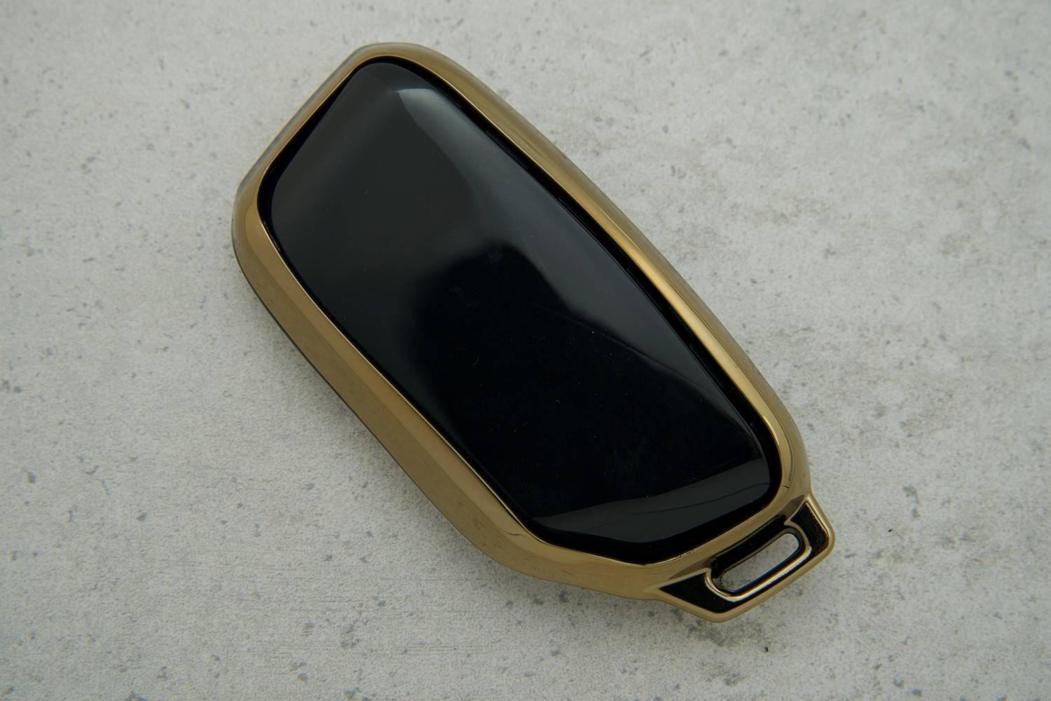 Чохол BMW для 735i / 740Li (чорний із золотим, поліуретан) — стильний і практичний аксесуар для захисту автопульта від подряпин, потертостей та щоденного зносу зі збереженням зручності користування.