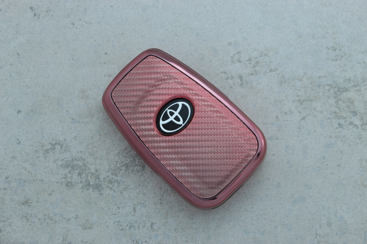Чохол для ключа Toyota (Camry, Avalon) 2 кнопки carbon рожевий поліуретан — стильний та практичний аксесуар, який захищає ключ від подряпин, пилу та щоденних ударів, зберігаючи його функціональність та привабливий вигляд.
