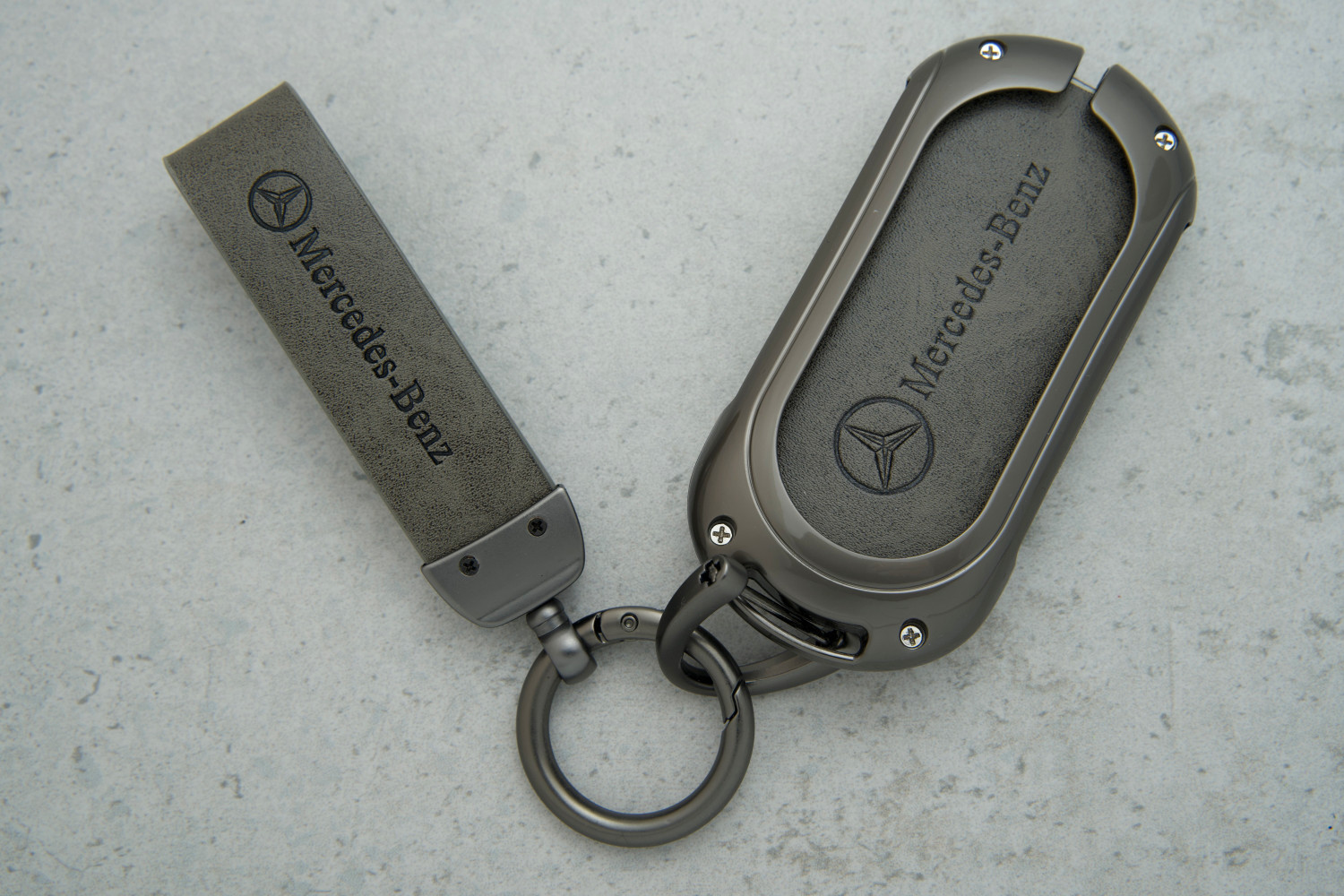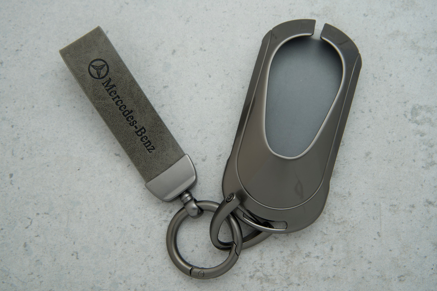 Чохол для ключа Mercedes Smart (S400L, S450L, S500L) — преміальний захист вашого ключа, виконаний із сірої натуральної шкіри з металевими вставками сірого кольору, що поєднує елегантність і довговічність.