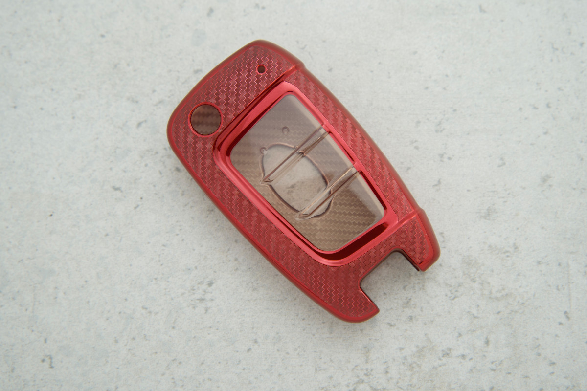 Чохол для автоключа Hyundai Sonata — елегантний аксесуар під 3 кнопки, виготовлений із поліуретану з ефектом карбону у насиченому червоному кольорі. Він призначений для надійного захисту ключа від подряпин, пилу та щоденних пошкоджень, поєднуючи практичність із яскравим зовнішнім виглядом. Матеріал приємний на дотик, не ковзає та зберігає первісну форму навіть після тривалого використання.