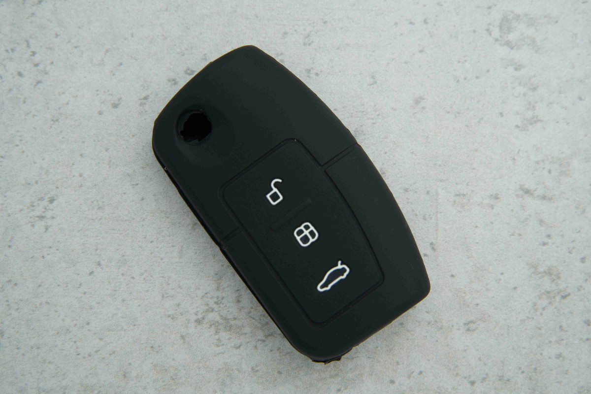 Чохол для автоключа Ford (Fiesta, Focus) — 3 кнопки, чорний силікон — практичний та надійний аксесуар, який захищає ключ від подряпин, потертостей і щоденних ушкоджень. М’який силікон щільно облягає корпус ключа, забезпечуючи комфортне користування та довговічність.