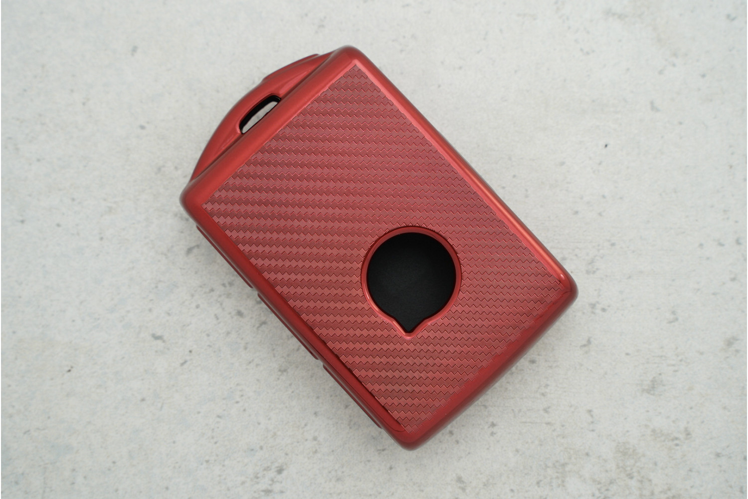 Чохол для автоключа Volvo XC60, XC90, S90, S60 у червоному карбоновому виконанні — компактний поліуретановий аксесуар, що захищає ключ від подряпин, потертостей та щоденного зносу.