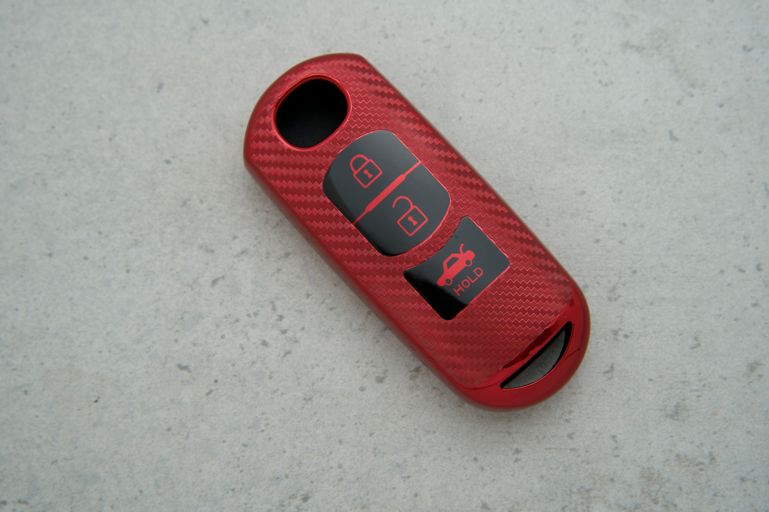 Чохол для ключа Mazda (3 кнопки Smart, CX-4/CX-5, H3) червоний карбон — стильний та функціональний аксесуар для надійного захисту вашого ключа.