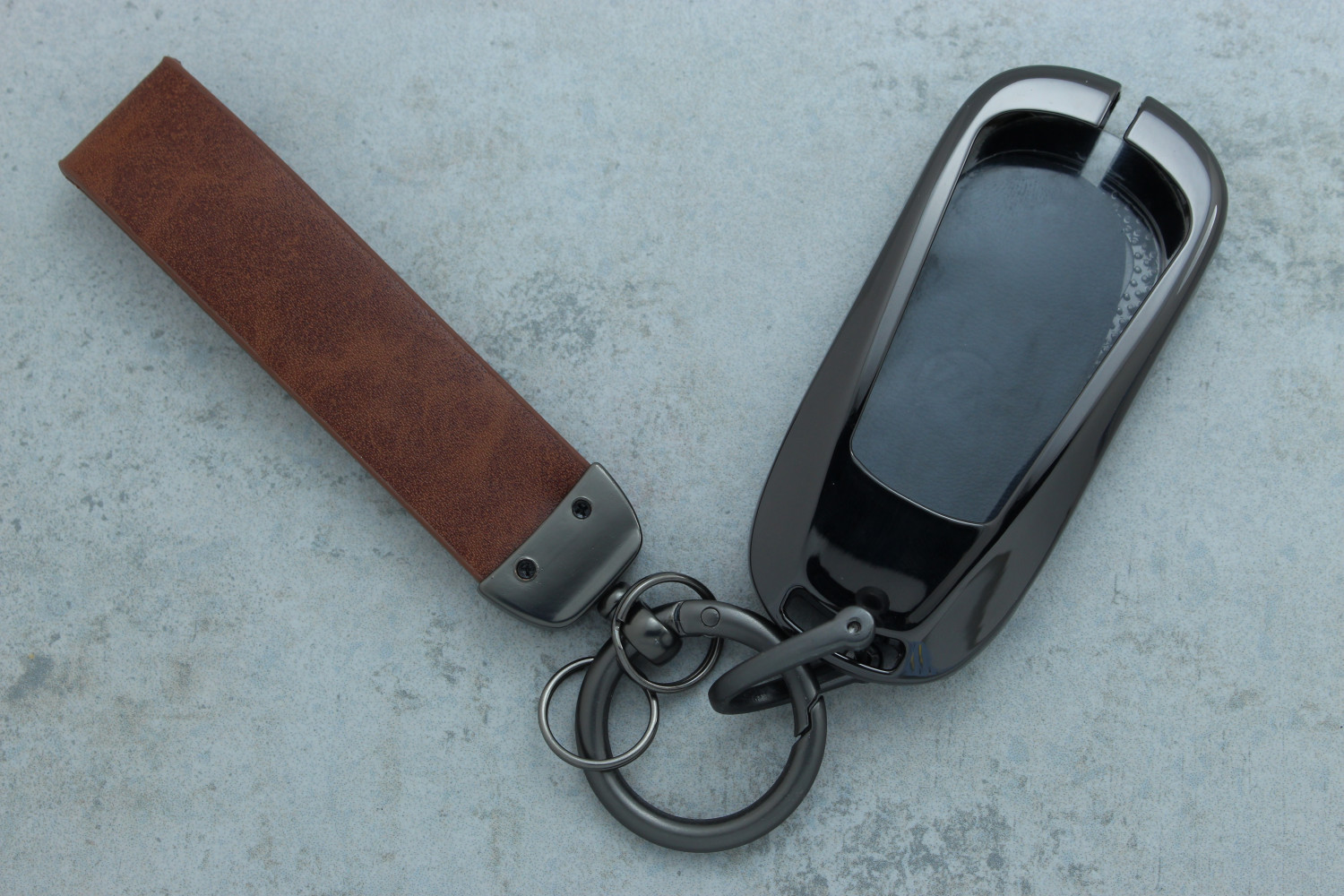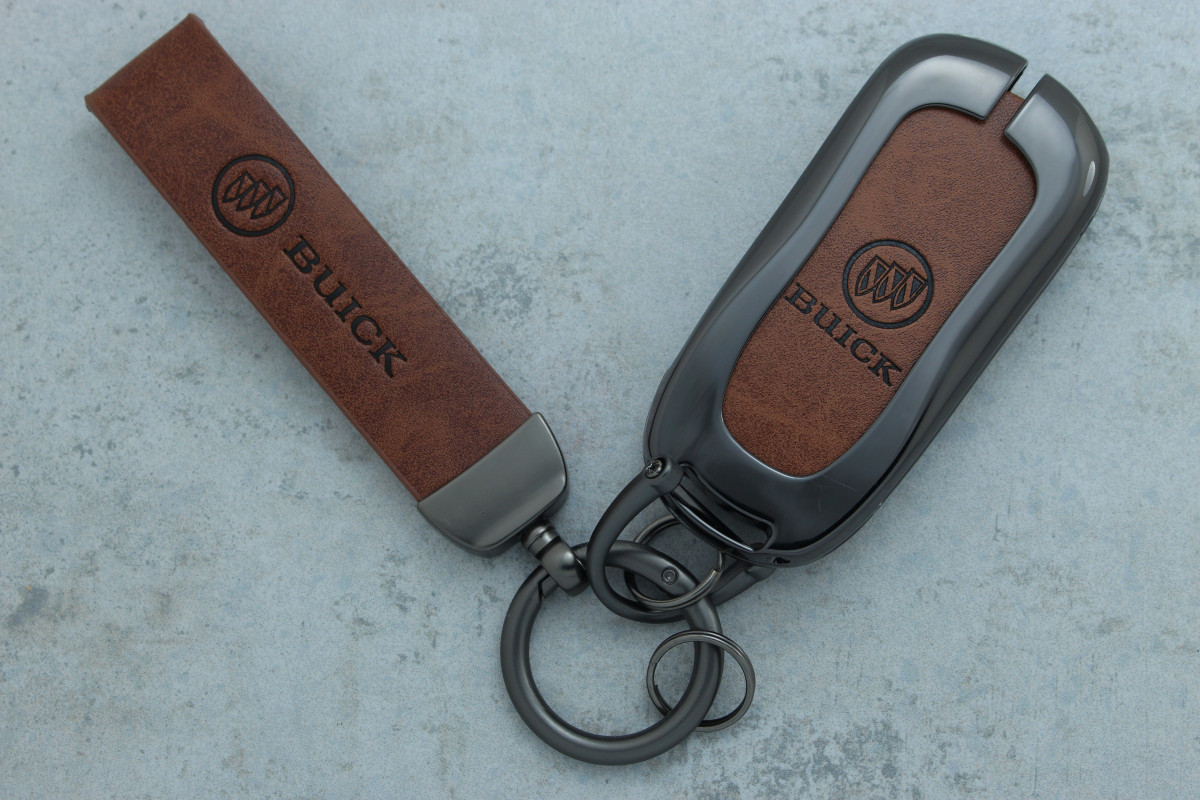 Чохол для автоключа Buick SMART графітовий метал із коричневою шкірою — стильний і надійний аксесуар, що захищає ключ від подряпин, зношування та щоденних пошкоджень.