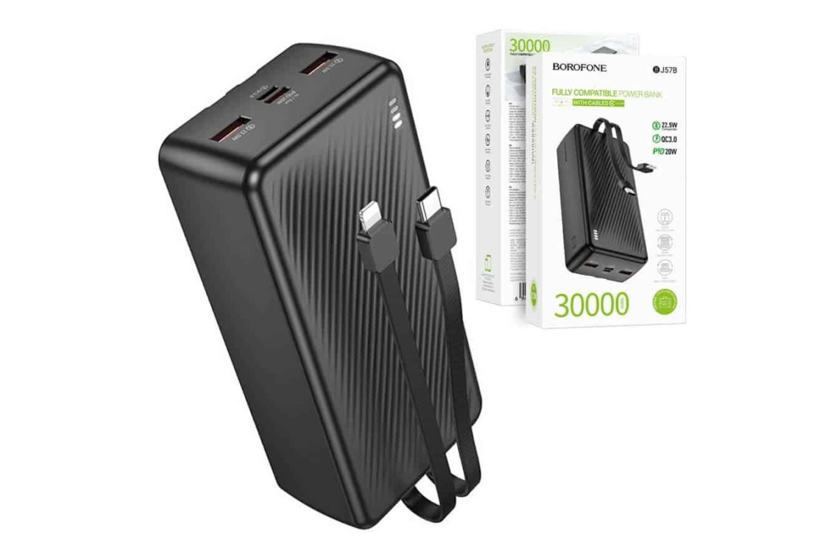 PowerBank Borofone BJ57B 30000 mAh — потужний зовнішній акумулятор для тривалої автономної роботи смартфонів, планшетів та інших гаджетів, який забезпечує стабільну та швидку зарядку навіть у дорозі чи під час подорожей.